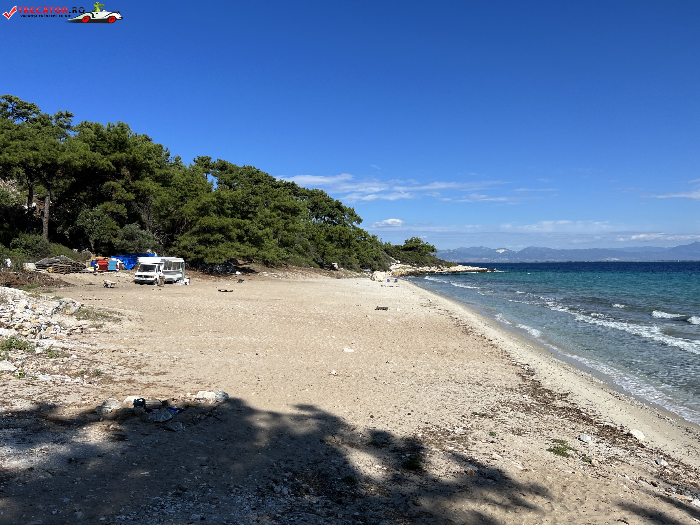 Exista locuri de parcare suficiente la umbra pinilor din spatele plajei iar intrarea in apa este lina, plaja Glikadi este recomandata familiilor cu copii.
