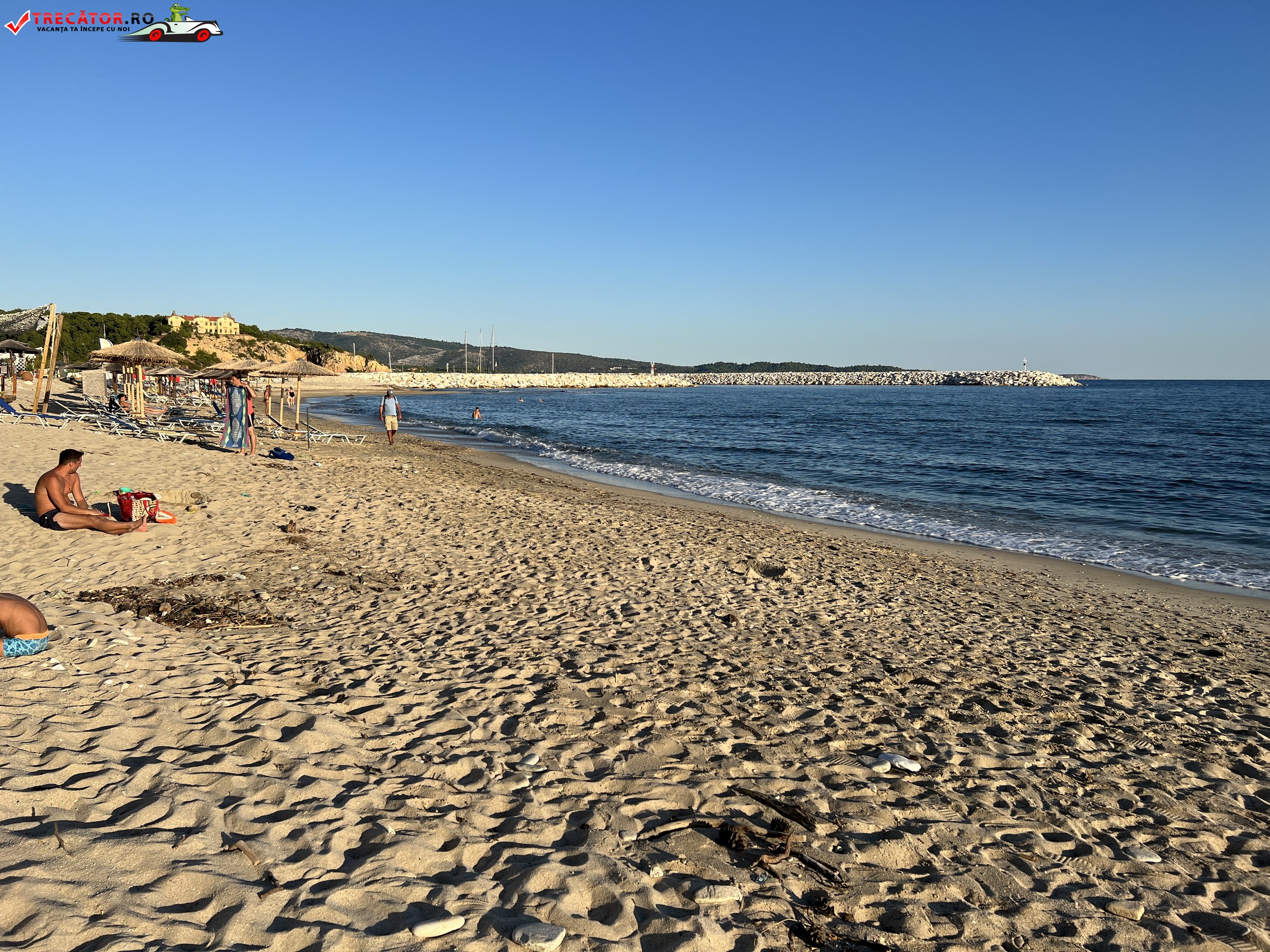 Este acoperită cu nisip alb şi pe alocuri cu pietricele mici, fiind cunoscută ca una dintre cele mai aglomerate plaje din timpul verii, datorită locaţiei.