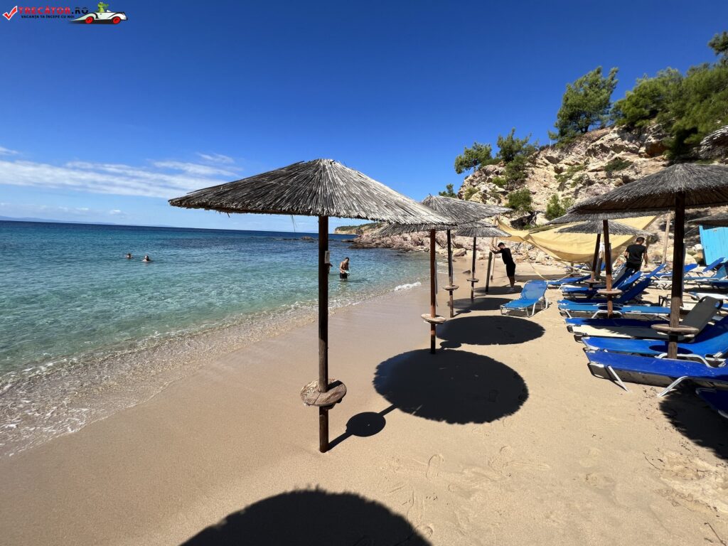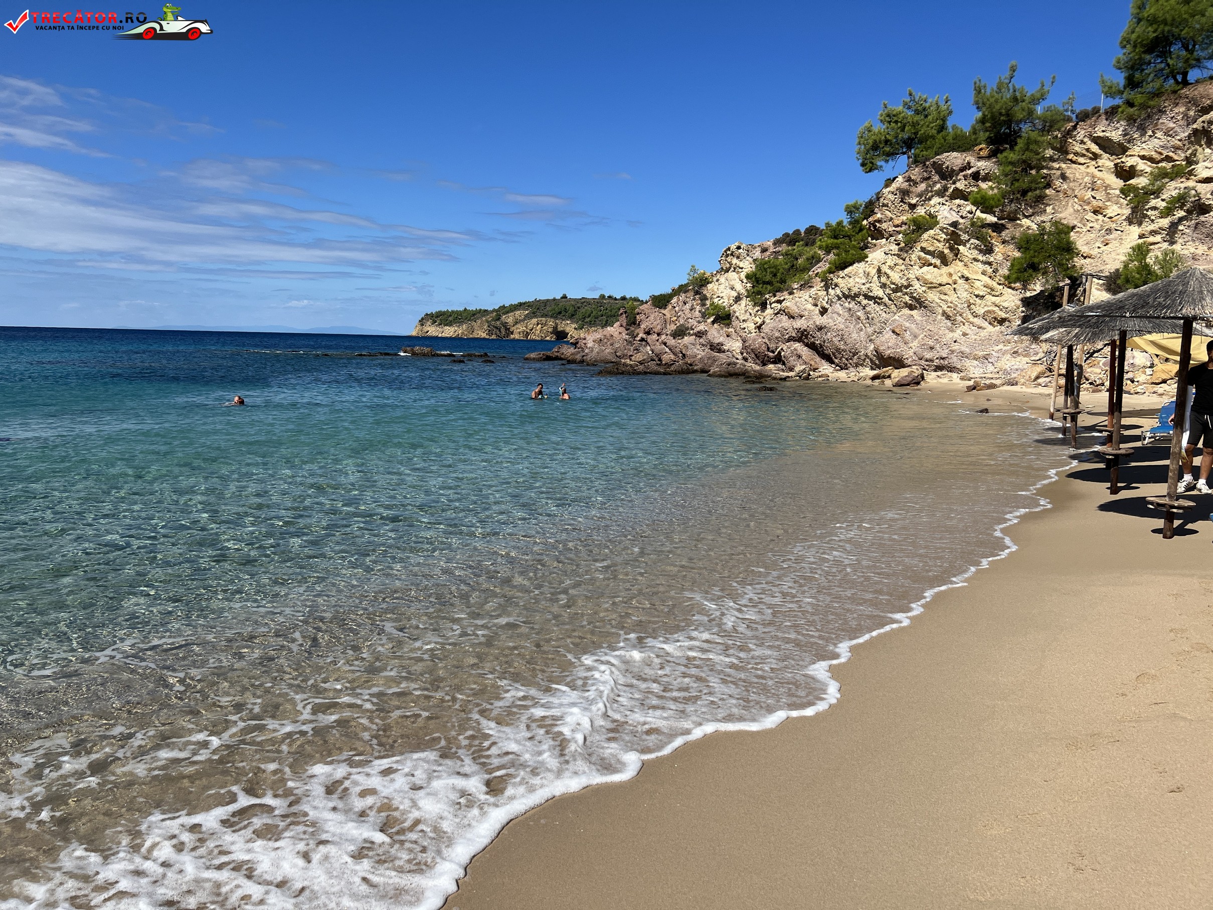 Plaja este situată într-un mic golf care o protejează de valuri și vânturi puternice.