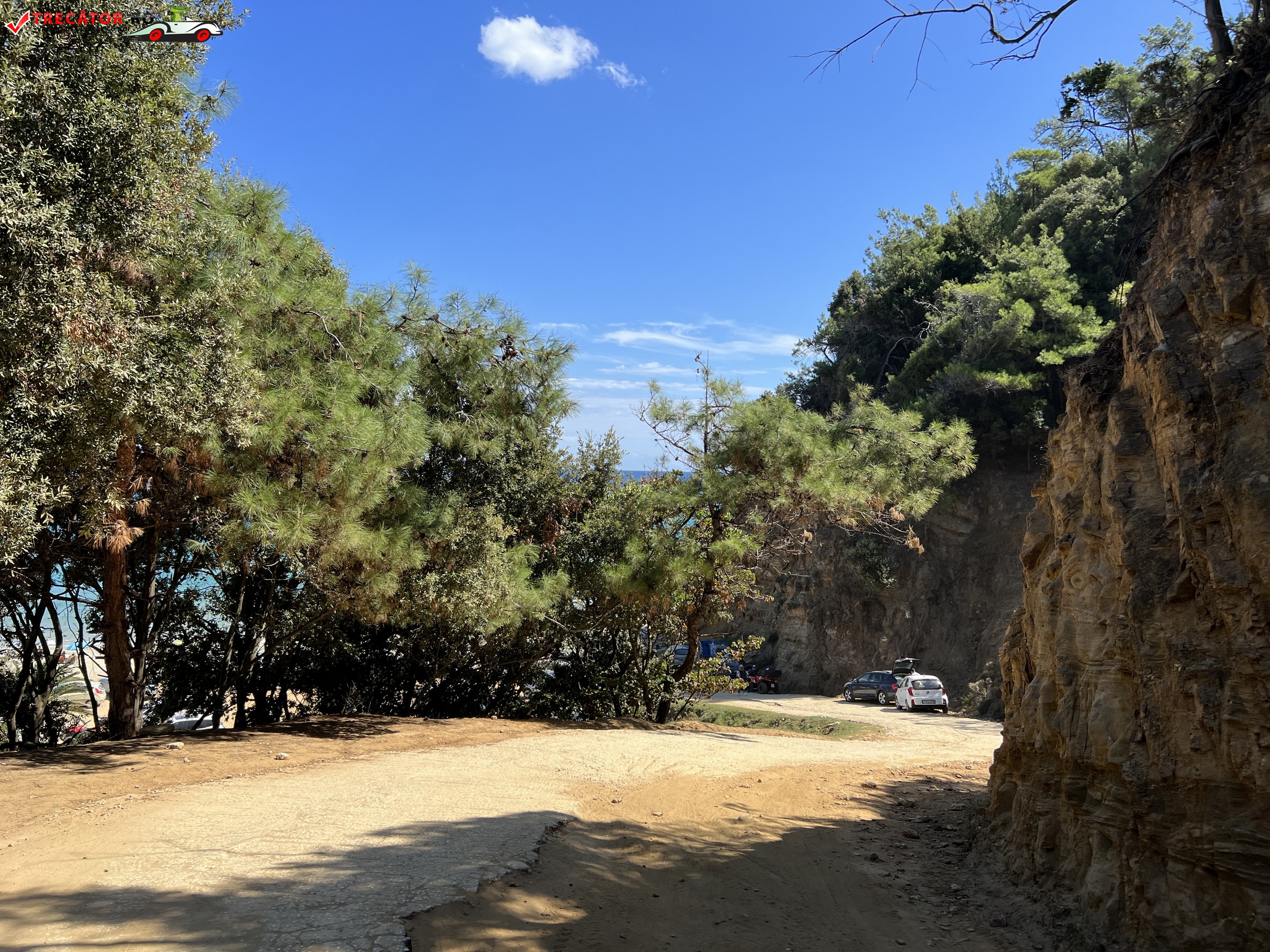 Pentru a ajunge la plajă o să trebuiască să cobori un versant destul de abrupt de aproximativ 1 km. Drumul este neasfaltat, plin de nisip roșiatic și cu câteva serpentine.