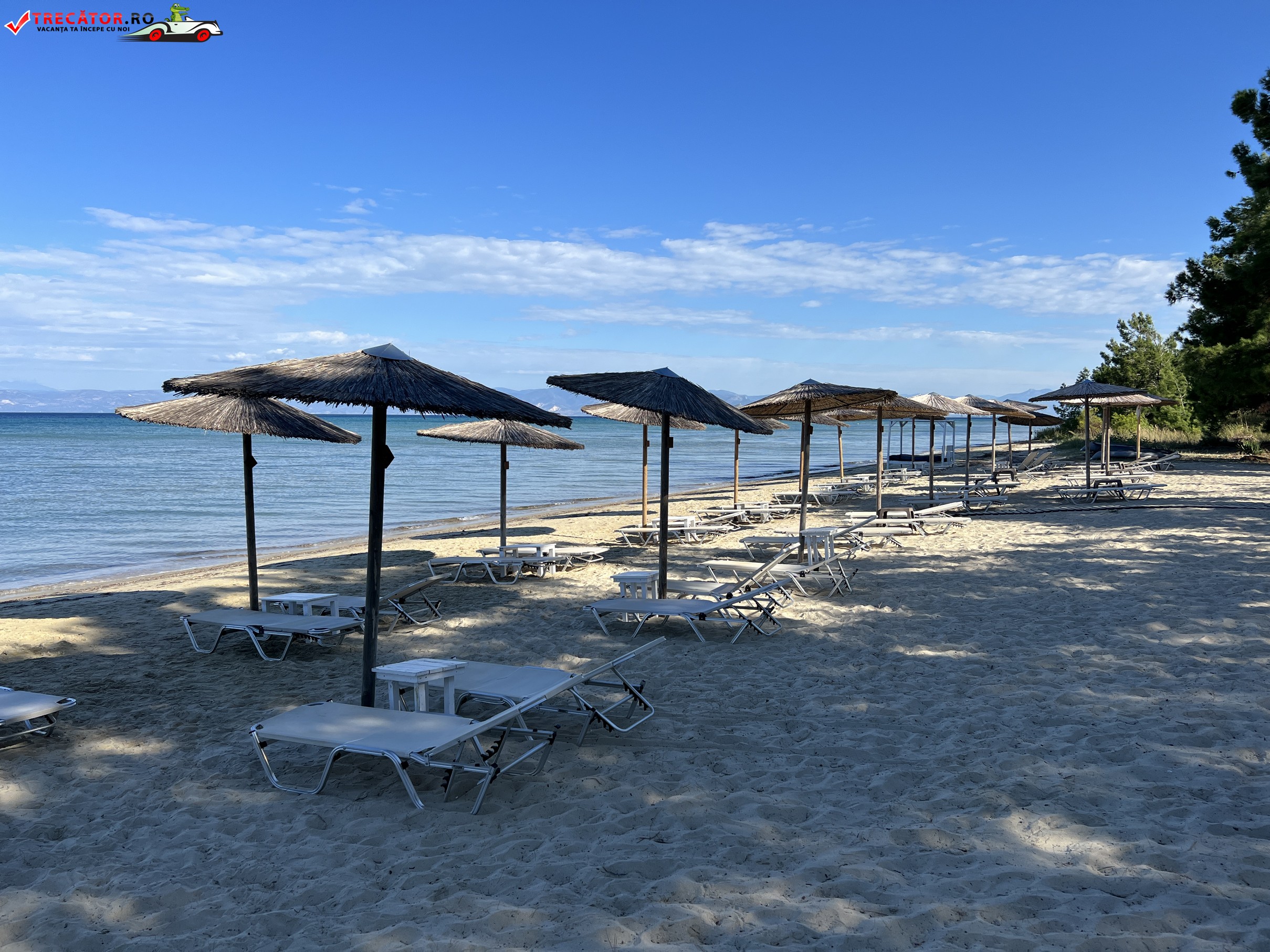 Sezlongurile pot fi ocupate in schimbul consumatiei de la beach bar, iar pe plaja exista chiar si un mic ponton amenajat, folositor in mod deosebit pentru cei care imping caruciorul de copii.