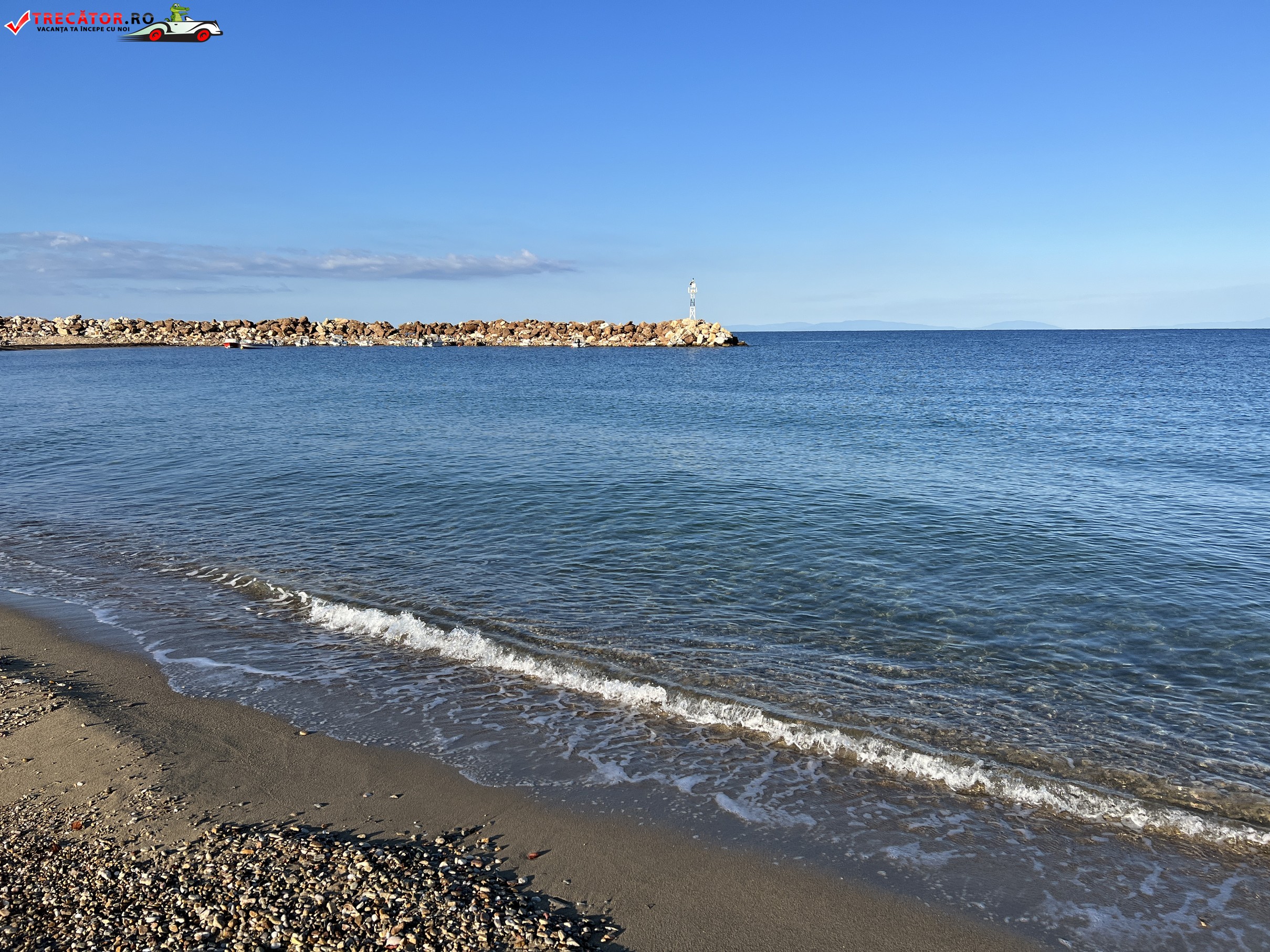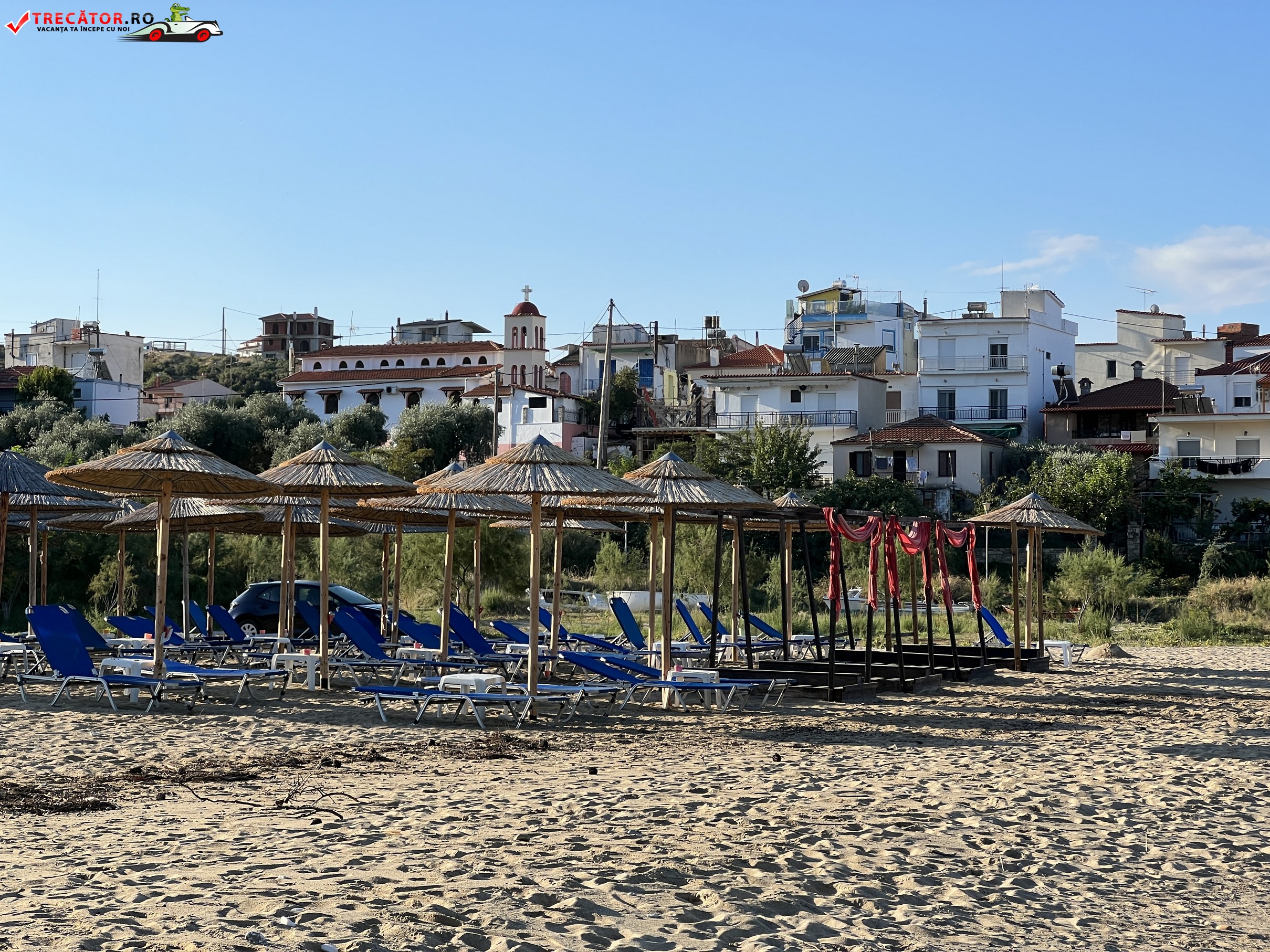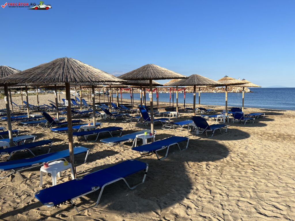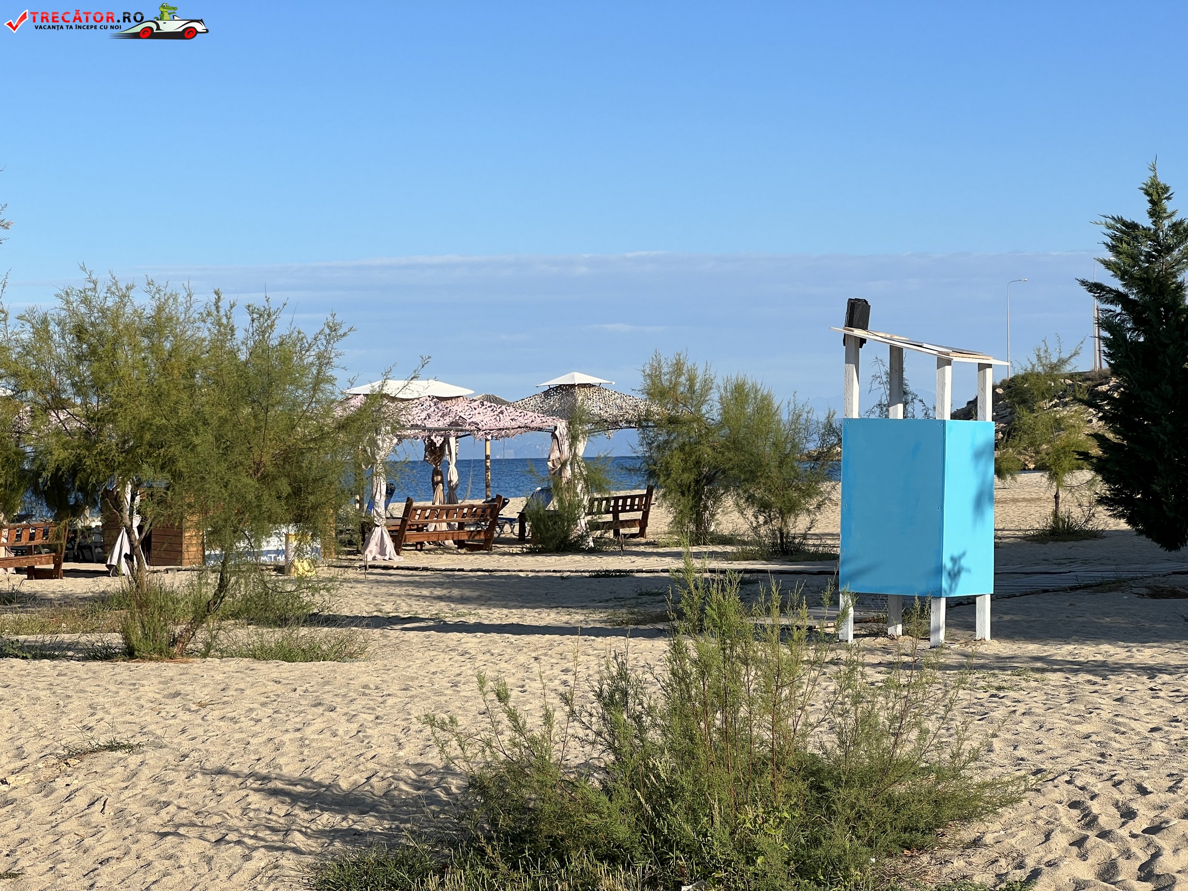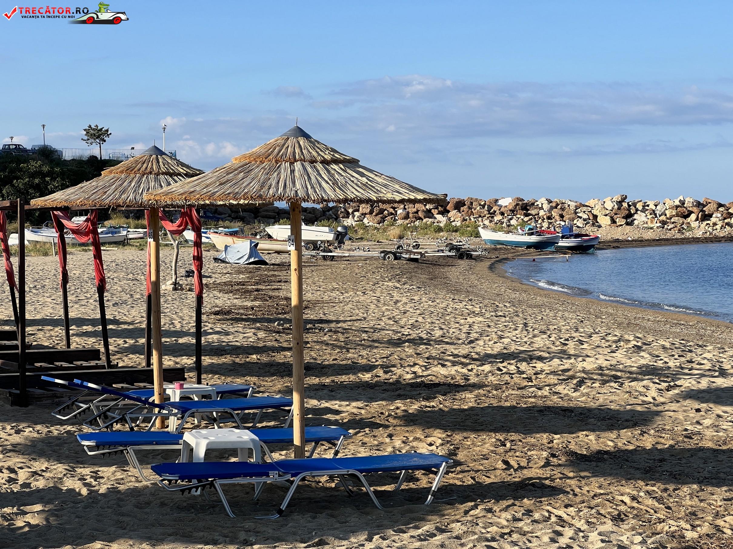 In partea stanga a plajei exista organizare cu sezlonguri si umbrele, iar in partea dreapta (unde plaja se ingusteaza), te poti bucura de o portiune destul de mare de plaja libera.