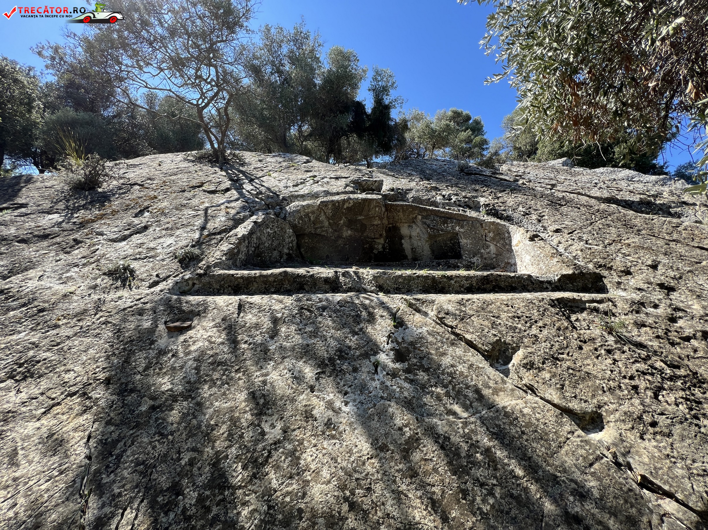 În coborâre se poate vedea cea mai mare parte a templului lui Hercule, dezgropată de săpăturile arheologice.