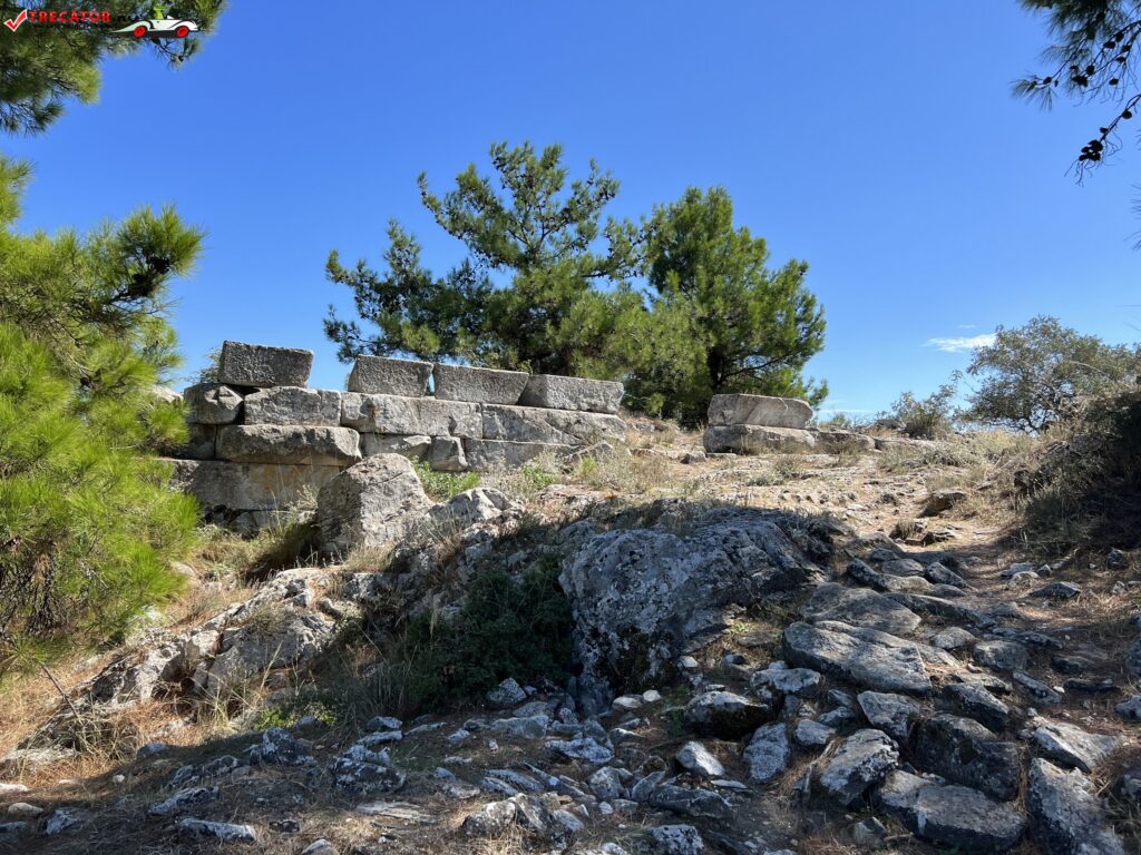 Pe dealul acropolei, înconjurat de metereze și ziduri impunătoare, au fost instalate sanctuarele ancestrale ale lui Athena Poliuchos și Apollo Pythios. Din primul, fundațiile templului din secolul al V-lea se păstrează astăzi. de exemplu.
