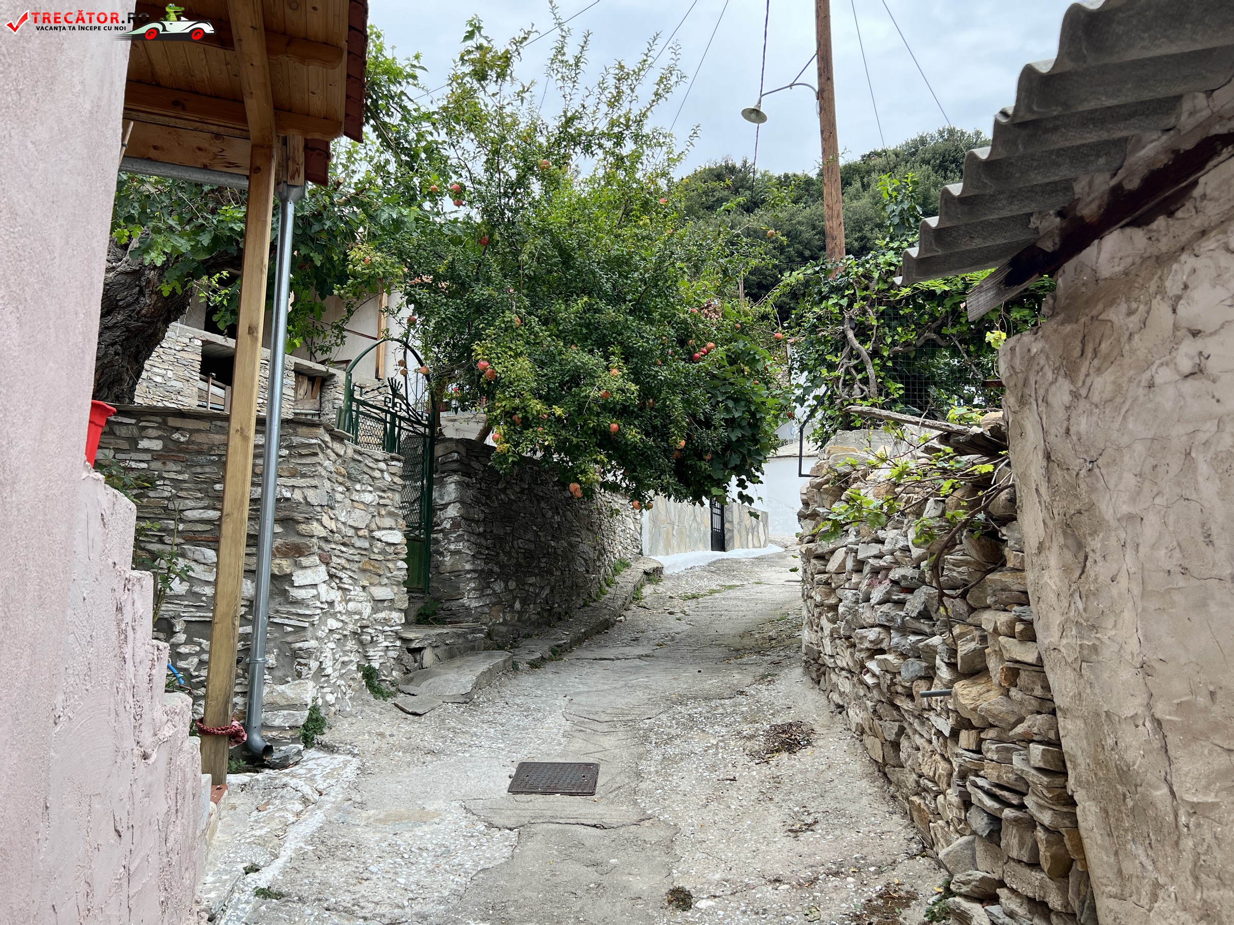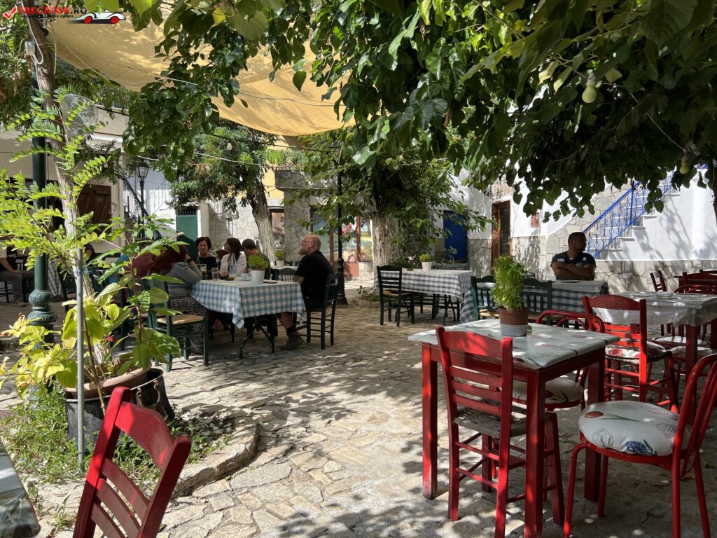 În centrul vechi al satului există două taverne, una lângă alta, la fel de tăcute, curate și primitoare. Te simți ca într-un film romantic vechi. Tavernele diferă una de cealaltă, la prima vedere, doar prin carourile fețelor de masă.