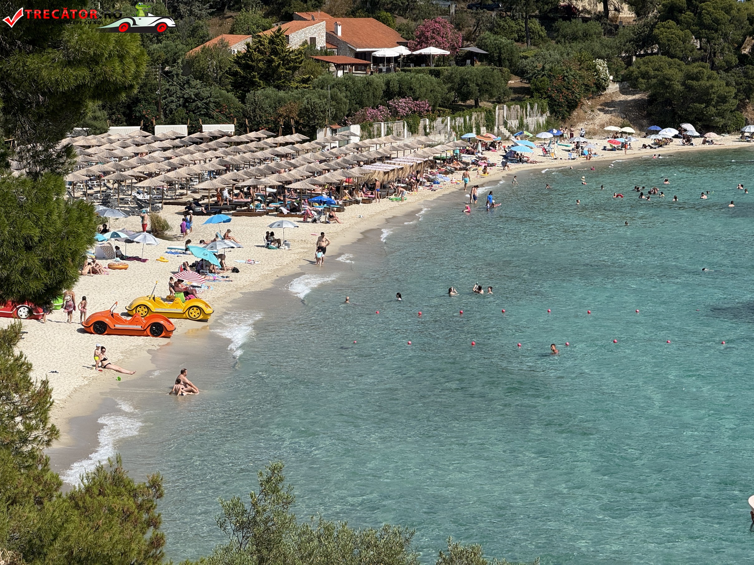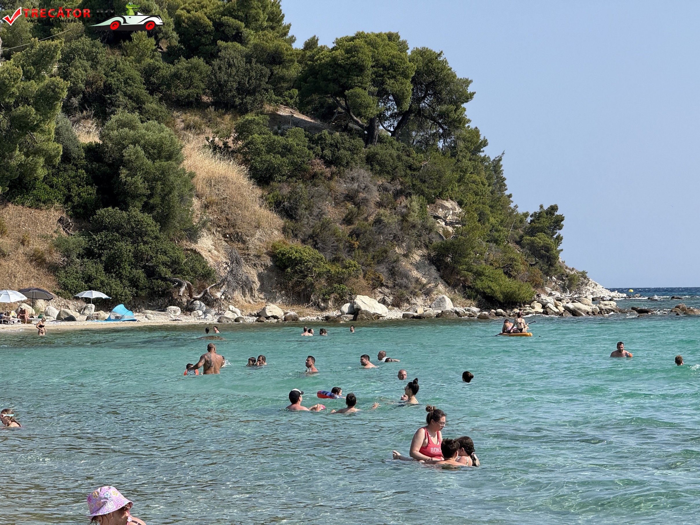 Pe de altă parte, dacă vrei să stai pe prosop, în liniște, să simți briza și mirosul de pini, partea neamenajată a plajei este ideală. În plus, mulți copaci oferă umbră naturală – un detaliu rar întâlnit pe alte plaje.