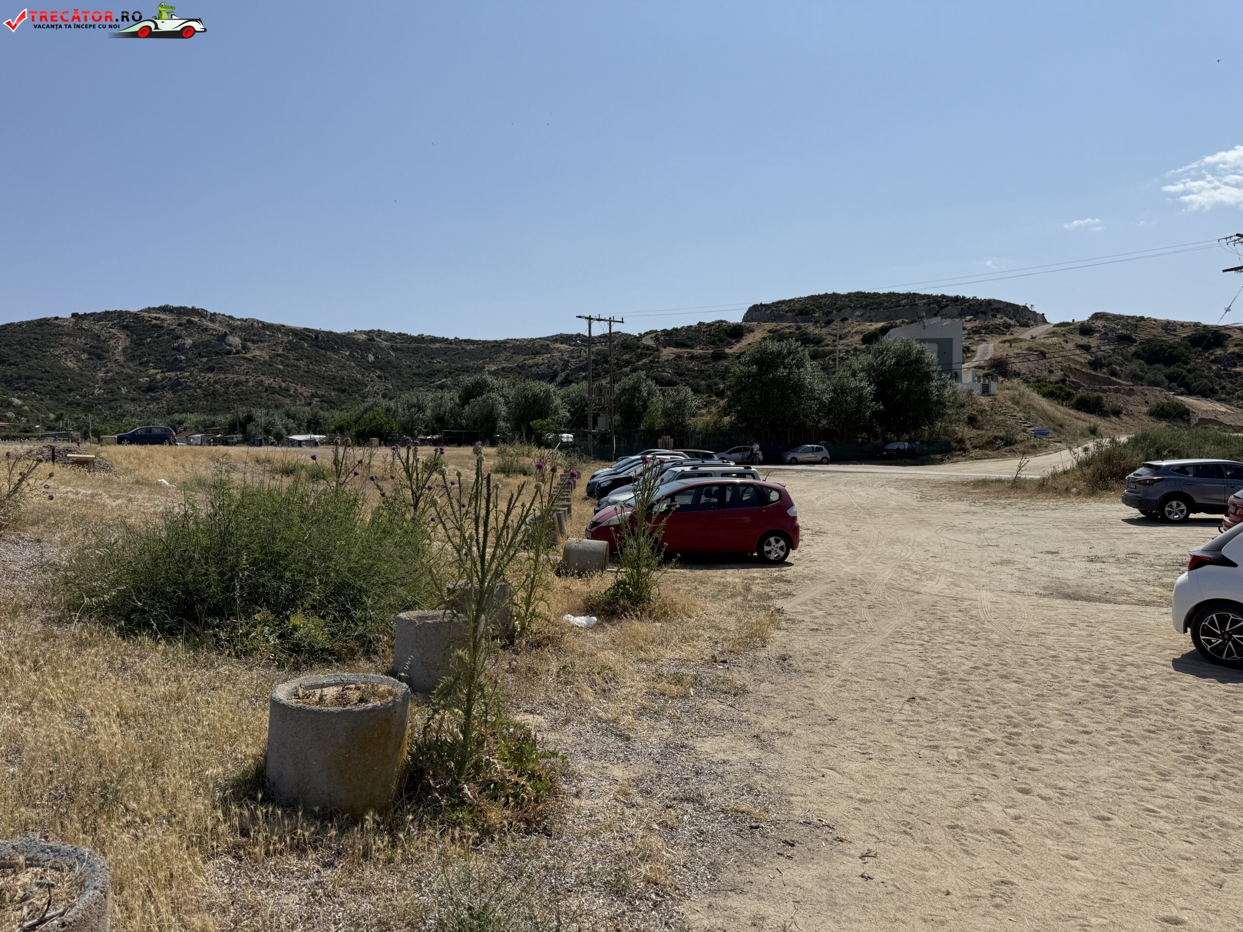 Accesul către plajă nu este tocmai simplu. Drumul este neasfaltat, iar GPS-ul te poate deruta printr-un adevărat labirint de străduțe create pentru un proiect imobiliar abandonat – cunoscut ca „orașul-fantomă” al Kriaritsiului. Cu toate acestea, odată ce ajungi, vei înțelege că fiecare minut de incertitudine a fost răsplătit.