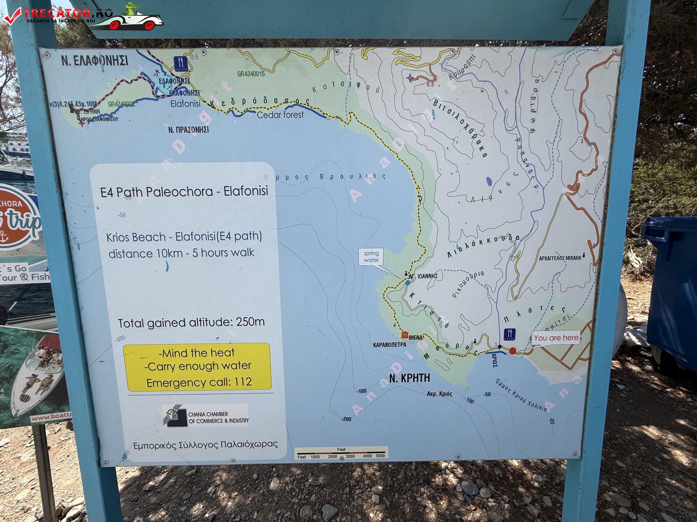 Accesul este facil, fie cu mașina pe un drum asfaltat, fie drumeție pe traseul E4 — legătura pietonală ce pornește de la Paleochora și continuă spre Elafonisi, trecând prin zone naturale remarcabile.