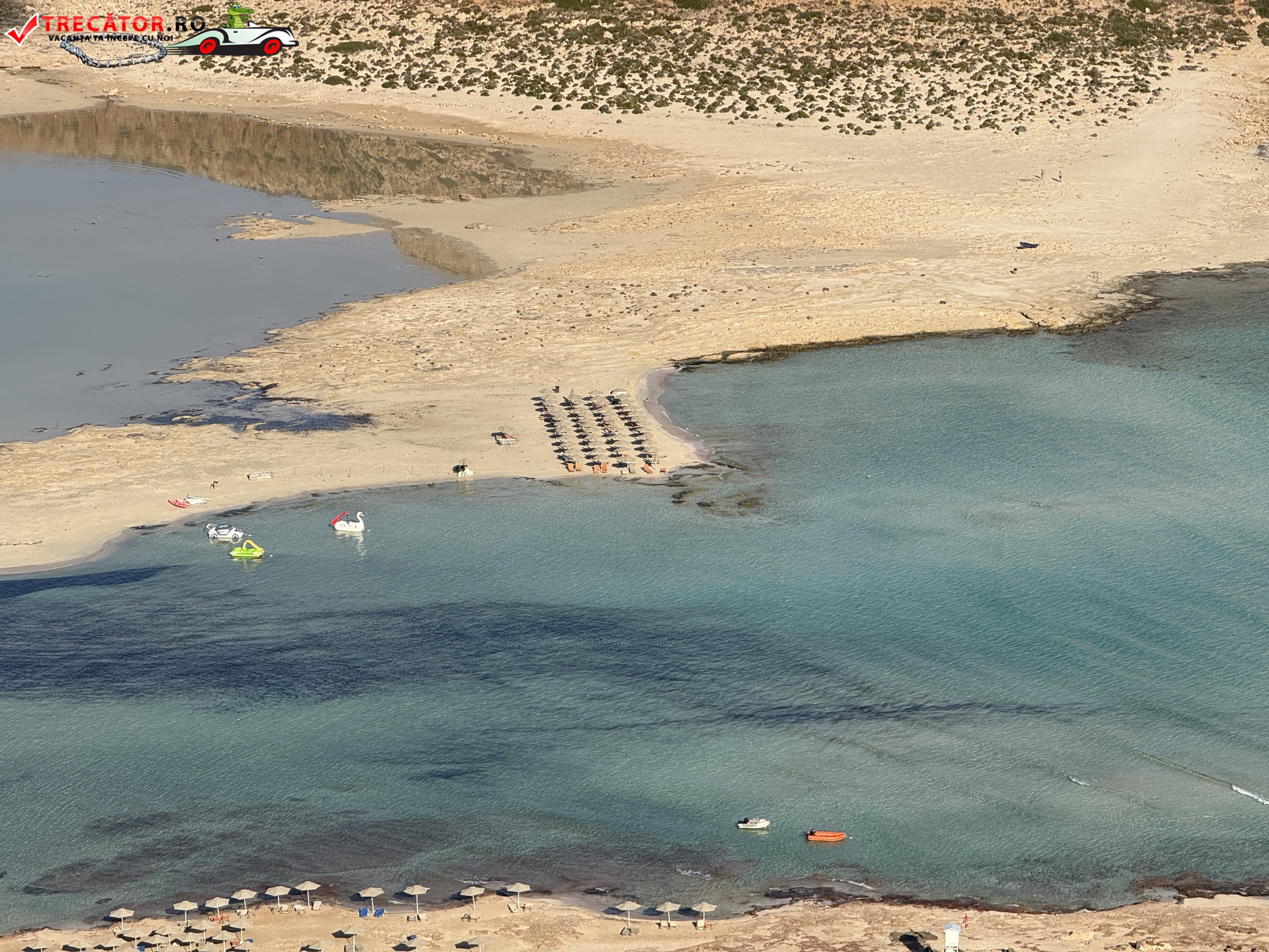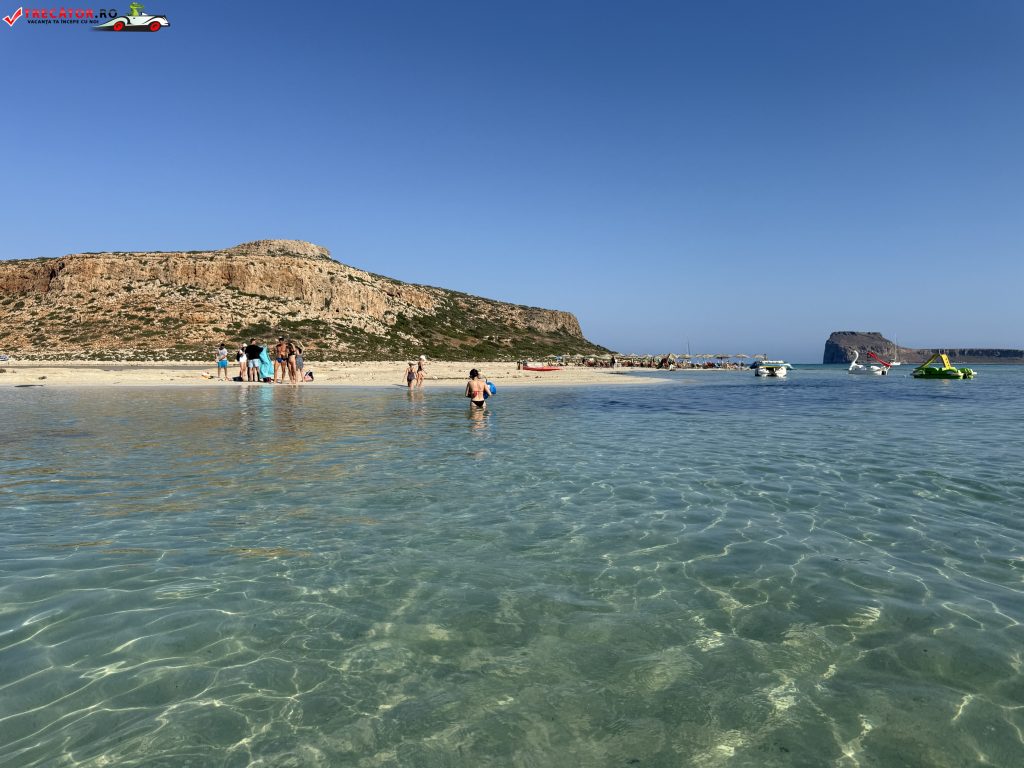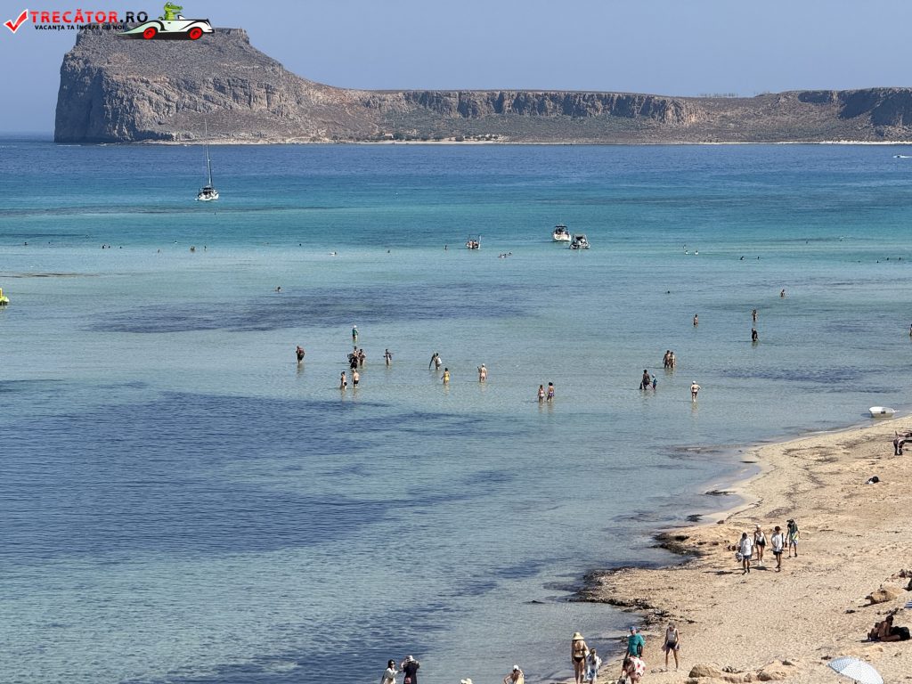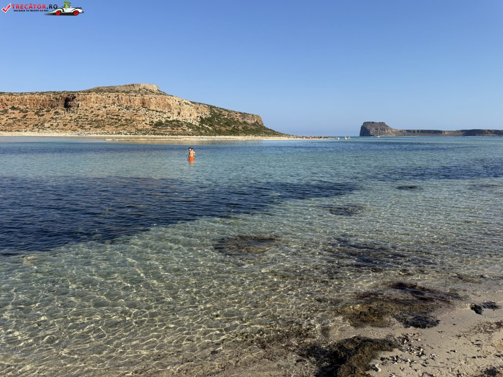 Cu cât am coborât mai mult, cu atât culorile deveneau mai ireal de frumoase: nuanțe de turcoaz, albastru cristalin, nisip alb cu reflexe ușor rozalii, într-o întindere ce pare desprinsă dintr-un vis. Laguna Balos are apa mică, nu este adâncă, caldă, perfectă pentru plimbări statice sau explorări lente; o adevărată oază de liniște rar întâlnită.