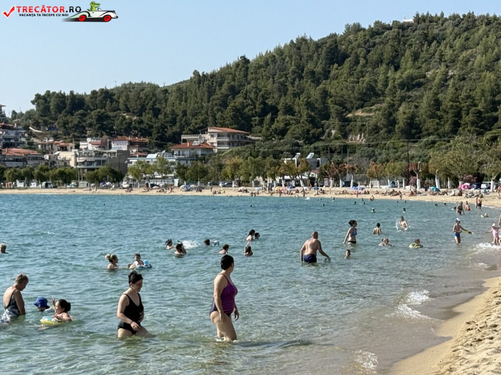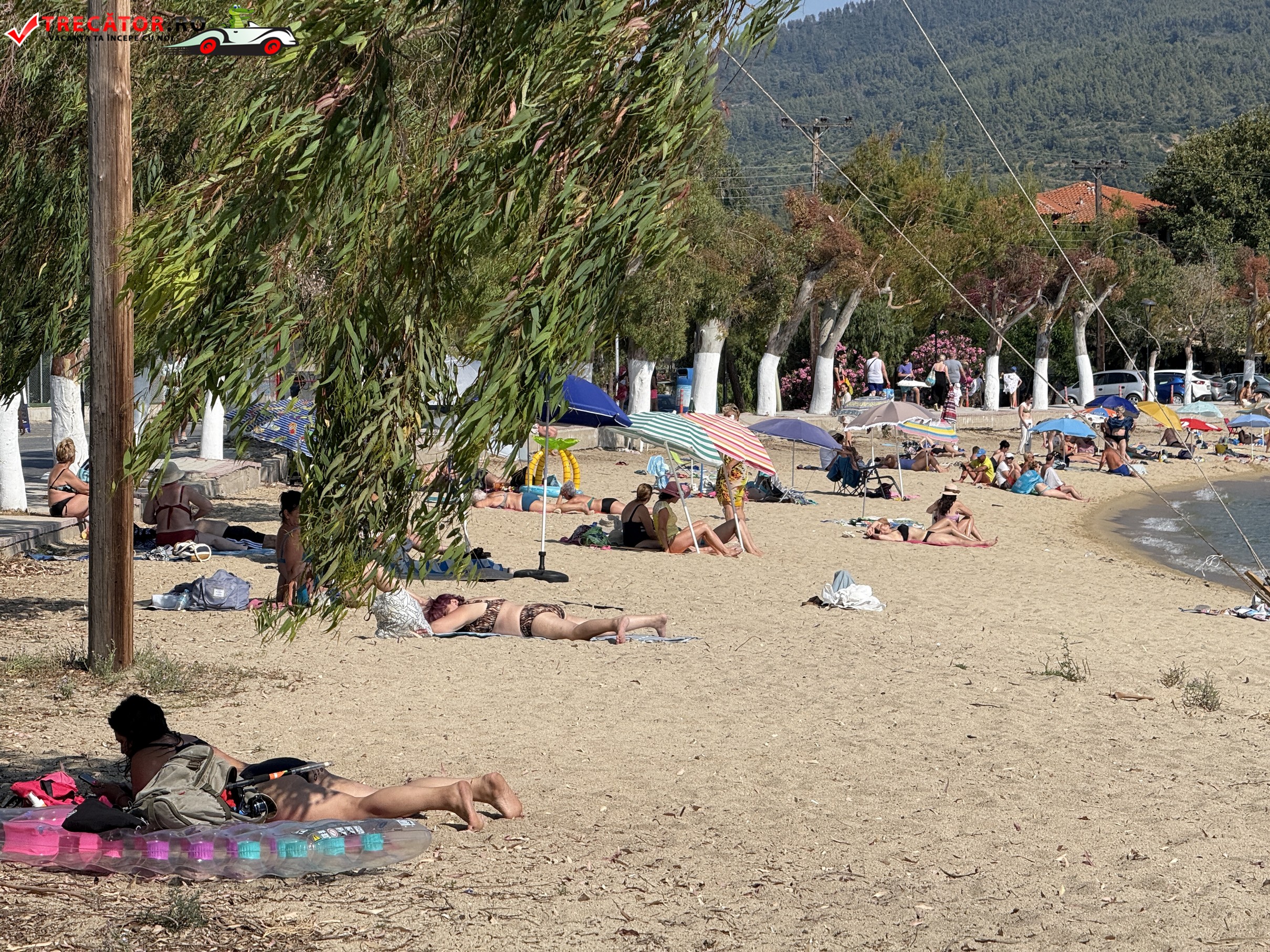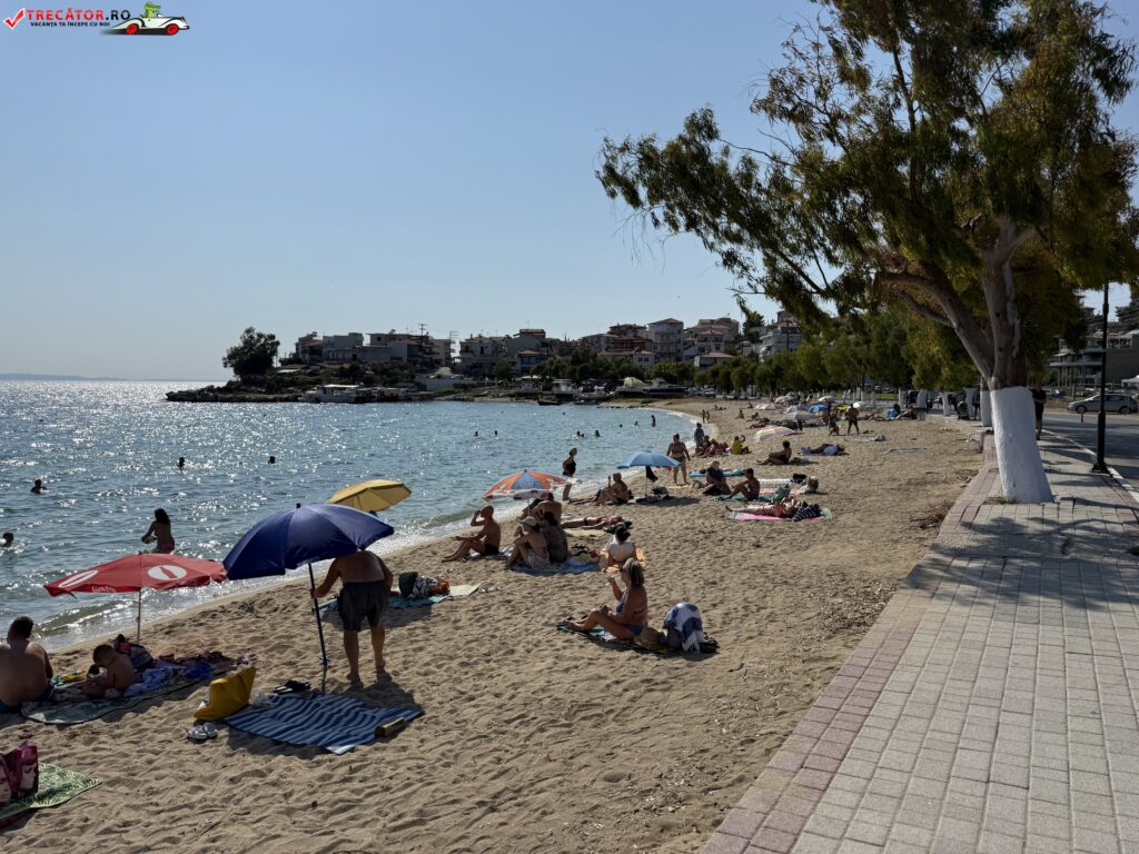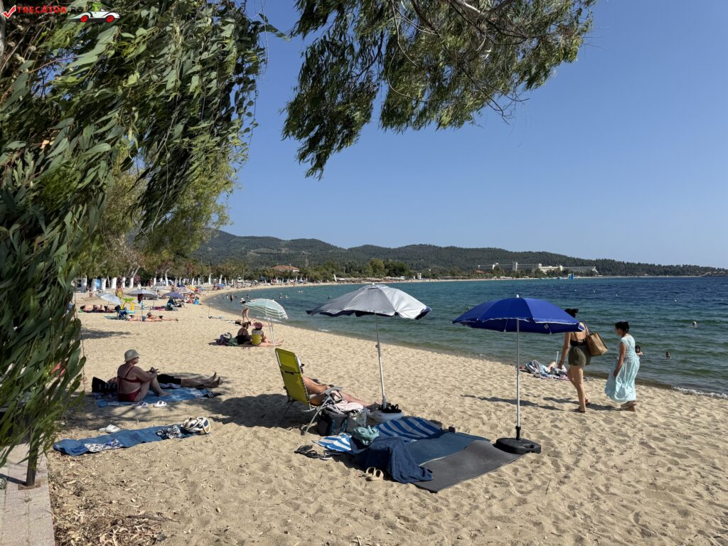 Dacă ești genul care nu stă locului prea mult, poți explora ușor împrejurimile. La sud de plajă, într-o plimbare lejeră de 15-20 de minute, ajungi la complexul Porto Carras, care are propriile plaje, dar și un peisaj natural spectaculos. Iar spre nord, ai plaja Paradisos – ceva mai liniștită, perfectă pentru o după-amiază relaxantă.
