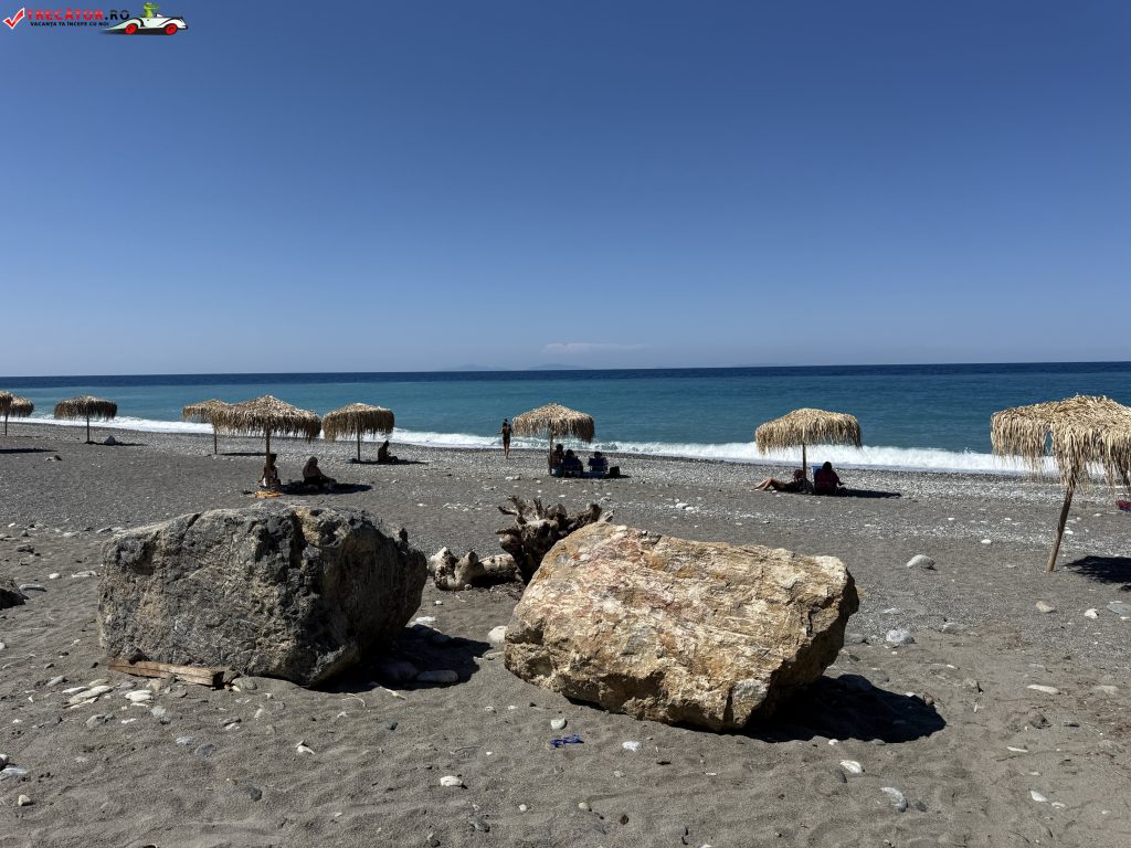Nu există facilități de nivel mare – nu vei găsi beach-baruri sau șezlonguri pe întreaga suprafață, dar sunt tavernele, cafenele în apropiere și câteva camere de închiriat pentru cei ce doresc să rămână peste noapte.