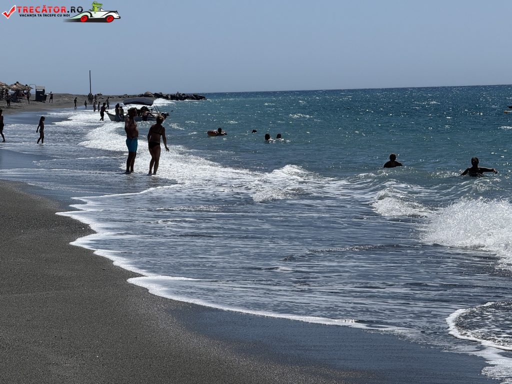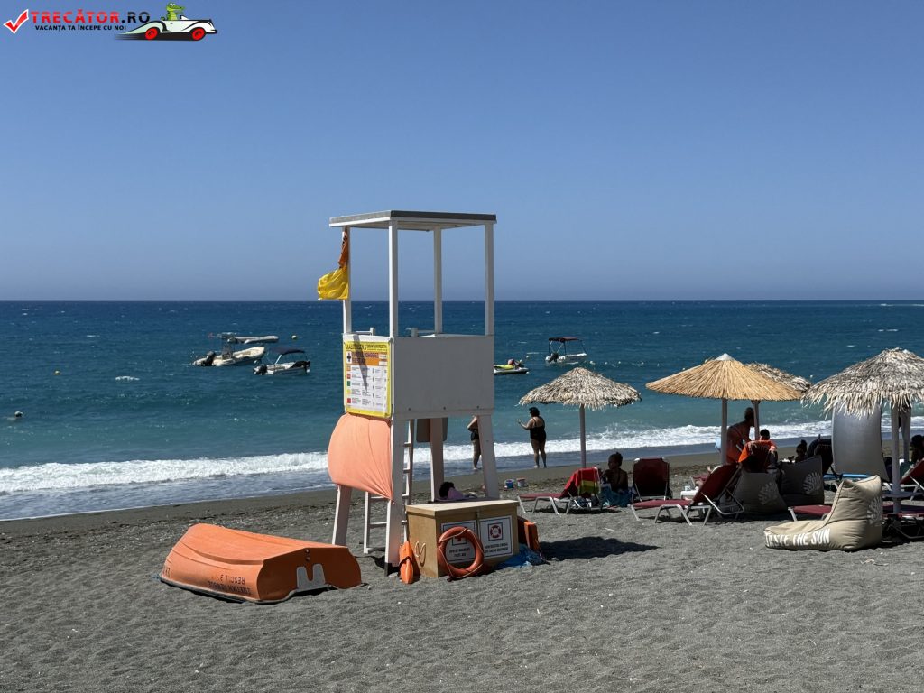 Plaja este bine organizată: există zone cu umbrele și șezlonguri (unele închiriate de beach-baruri, altele aduse de turiști), restaurante și cafenele pe promenadă, iar prezența unui salvamar asigură un plus de siguranță.