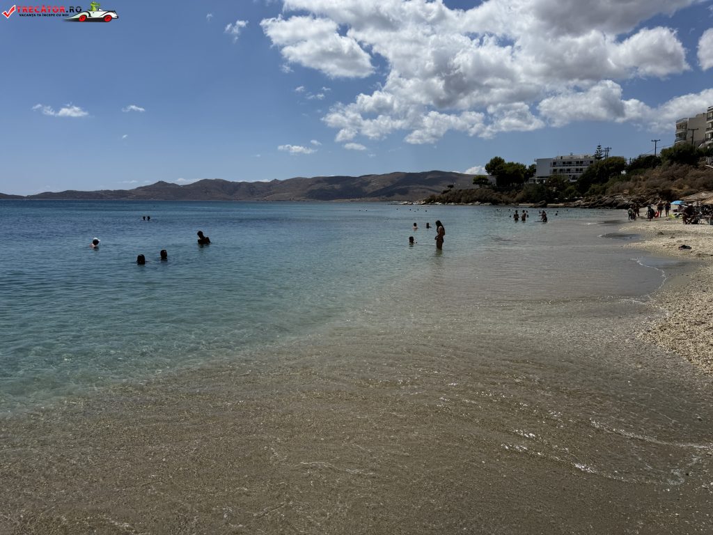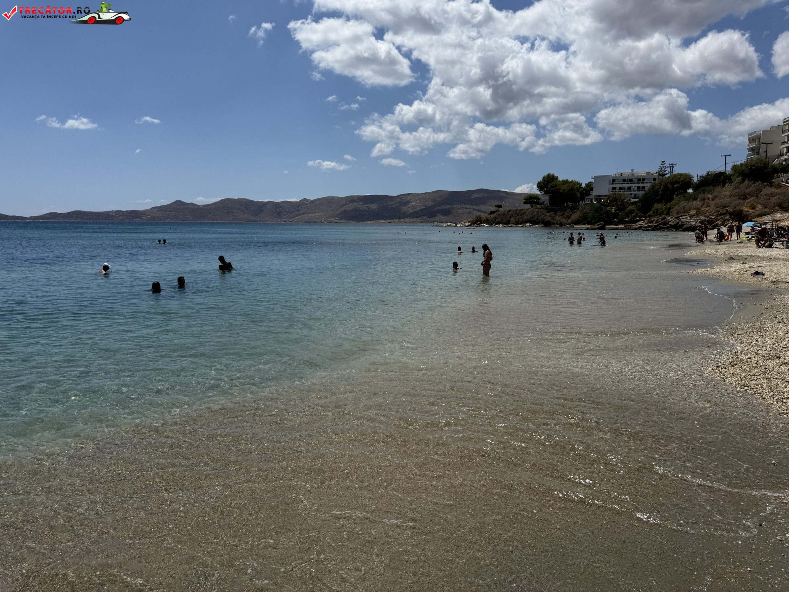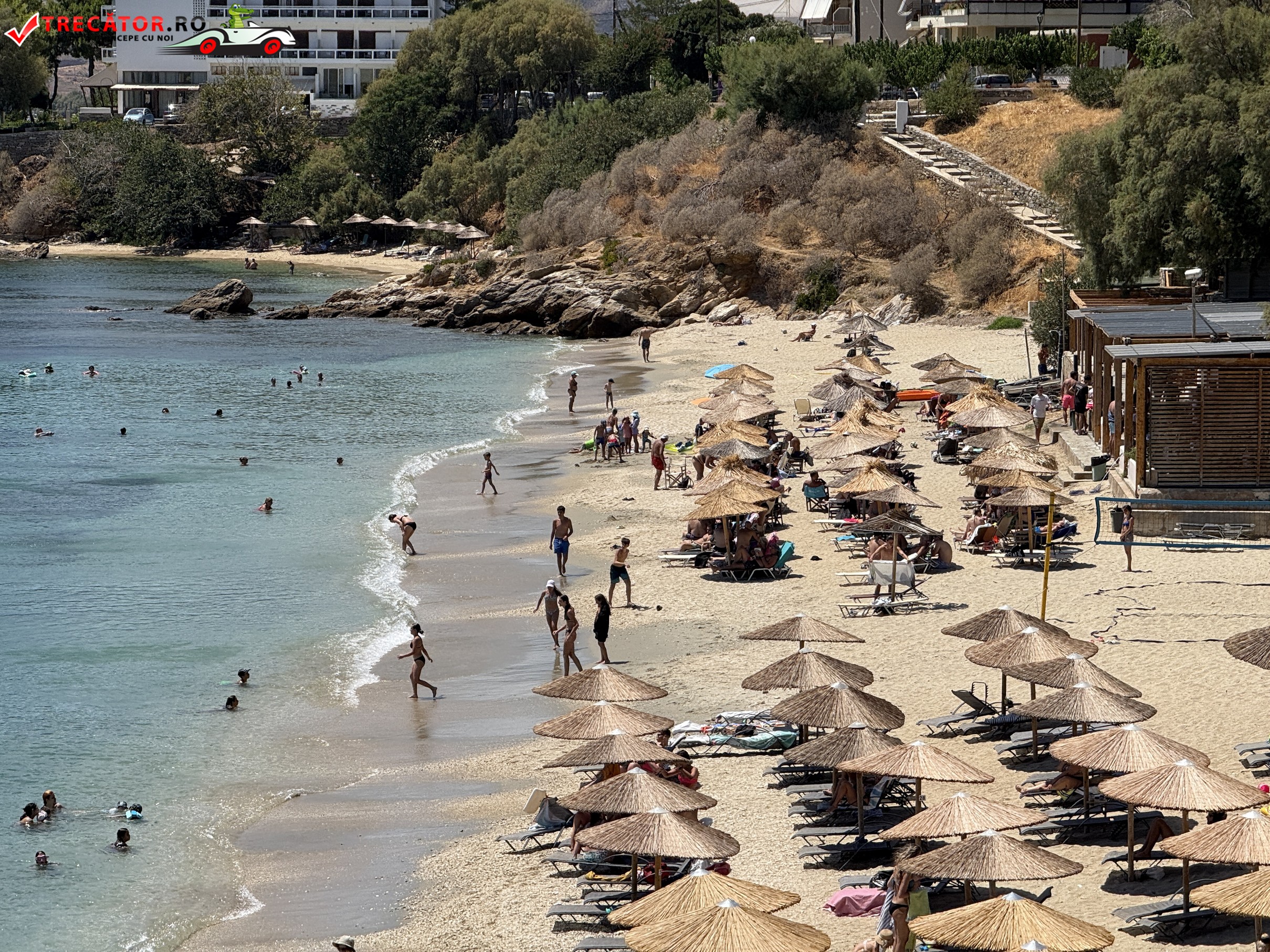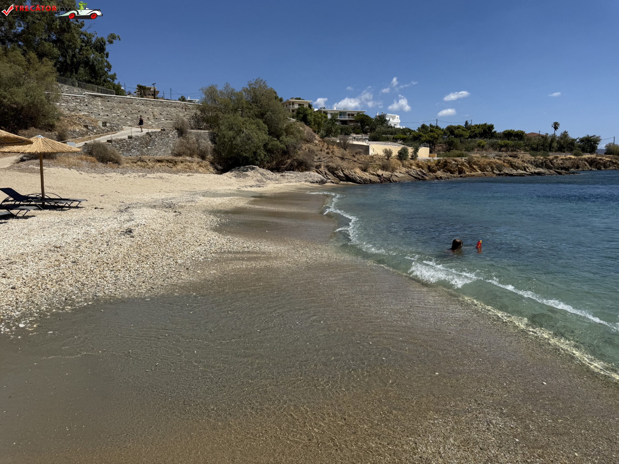 Plaja are orientare sud-vestică, ceea ce permite apusuri frumoase și este protejată, în general, de vânturile puternice care vin din nord sau nord-est (în special Meltemi). În zile liniștite, apa este extraordinar de limpede.