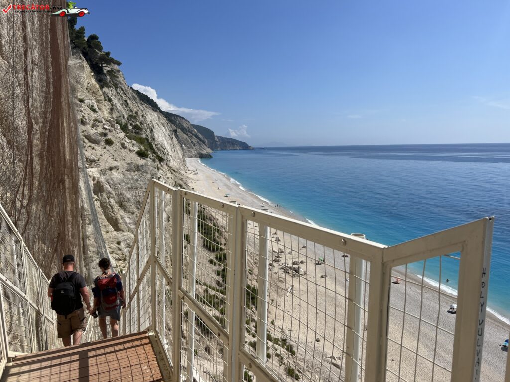 Accesul la plaja Egremni era în trecut dificil, deoarece era necesar să cobori aproximativ 350 de trepte abrupte pentru a ajunge la plajă. Aceasta îi oferea plajei o atmosferă izolată și liniștită. Totuși, în 2015, alunecări de teren cauzate de cutremurul din insula Lefkada au afectat zona și au dus la închiderea accesului public pentru o perioadă de timp.