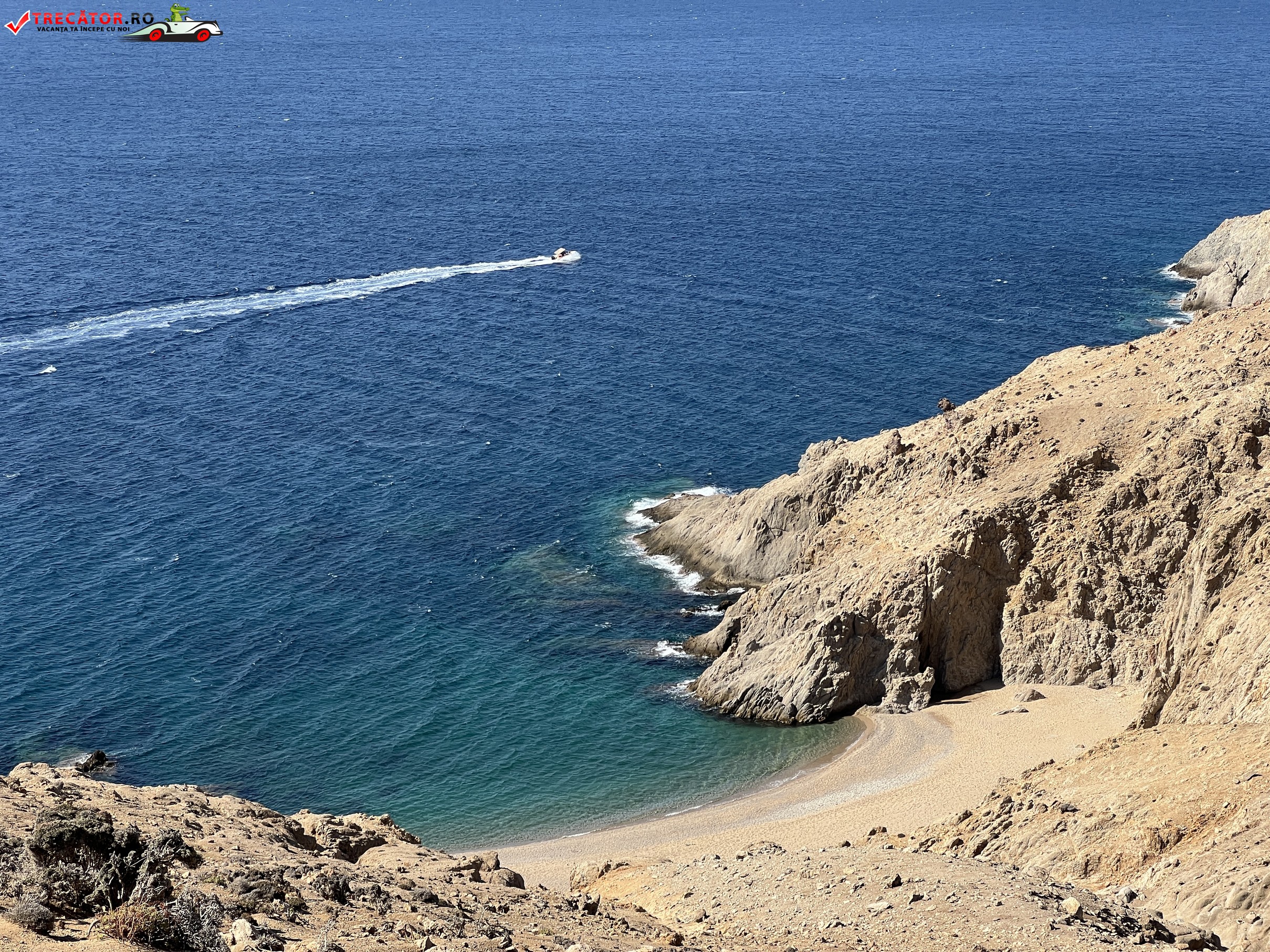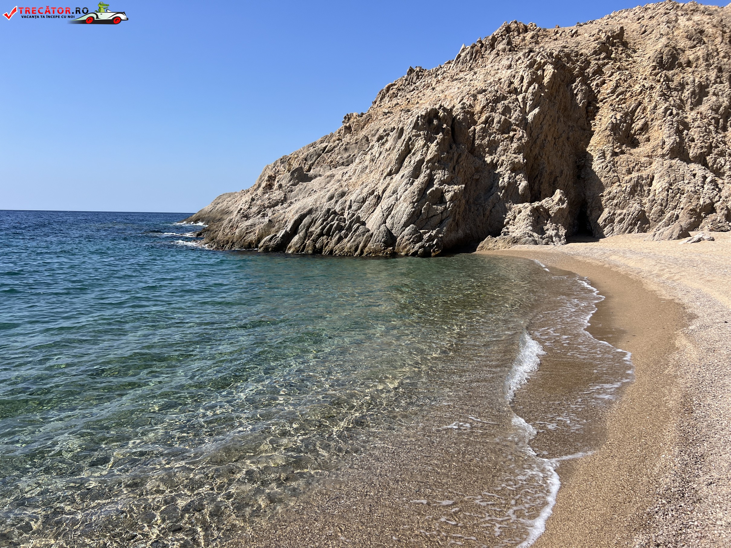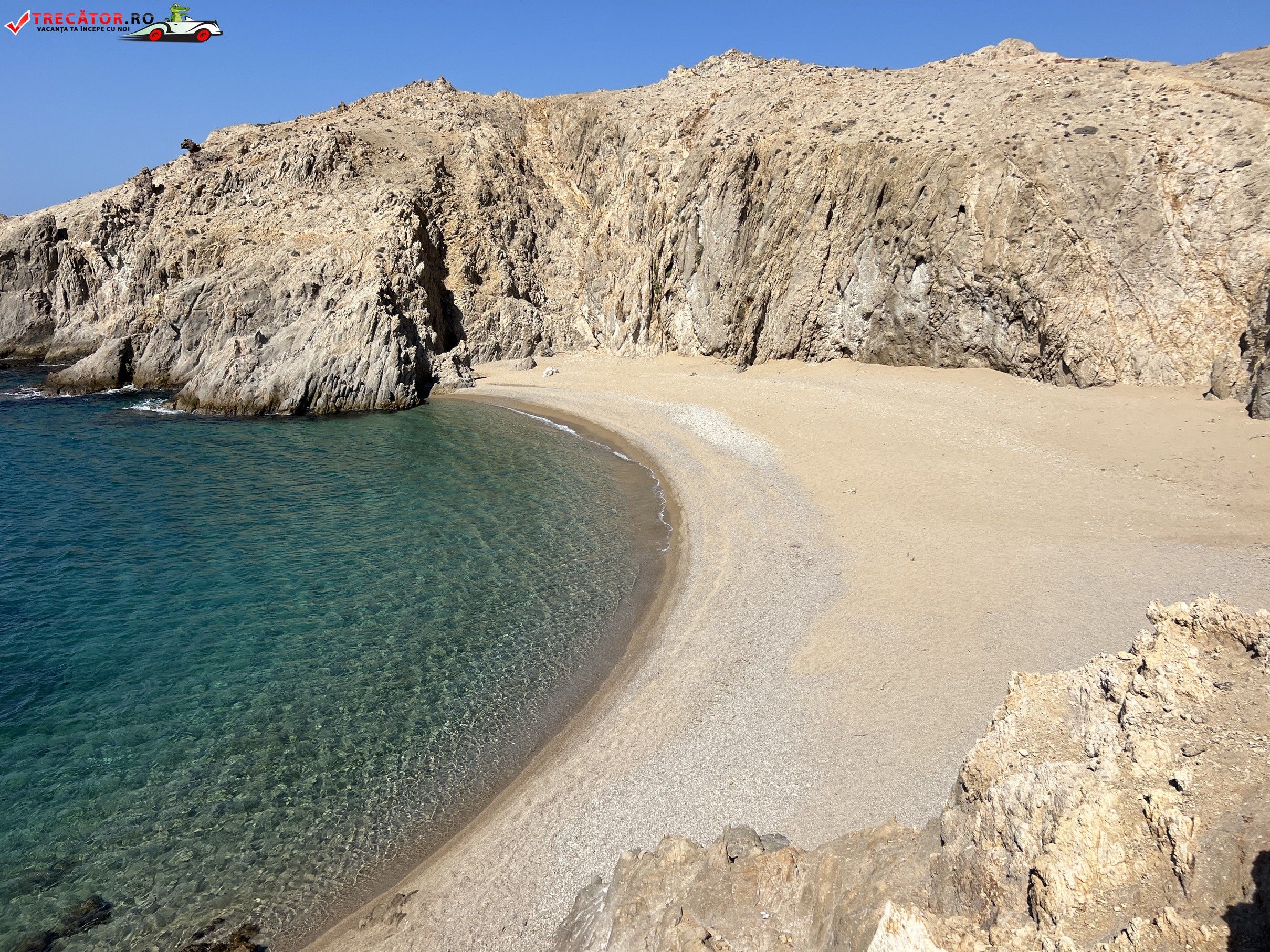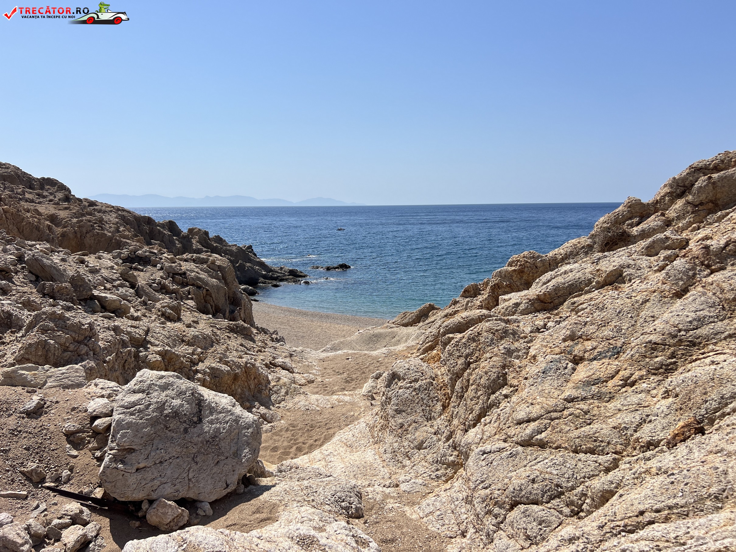 Situată pe coasta de nord a insulei, plaja Karkanis este ideală pentru cei care preferă liniștea și contactul direct cu natura, departe de agitația turistică. Această plajă este accesibilă doar pe jos sau cu barca, ceea ce adaugă la sentimentul de izolare și intimitate.