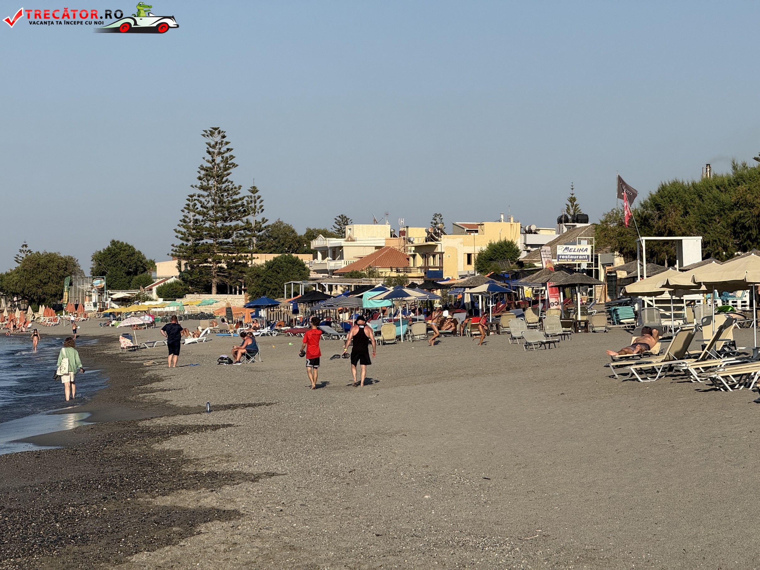În sezonul de vârf, plaja poate deveni foarte aglomerată, mai ales în lunile iulie și august; însă, dacă te îndrepți spre extremitățile plajei sau spre sectoarele mai retrase spre vest, poți găsi locuri mai liniștite. Accesul spre plajă este facil: drumul costier de la Chania, autobuze regulate între Chania și Platanias, precum și parcări locale (gratuită sau contra cost), deși în sezon acestea pot fi limitate.