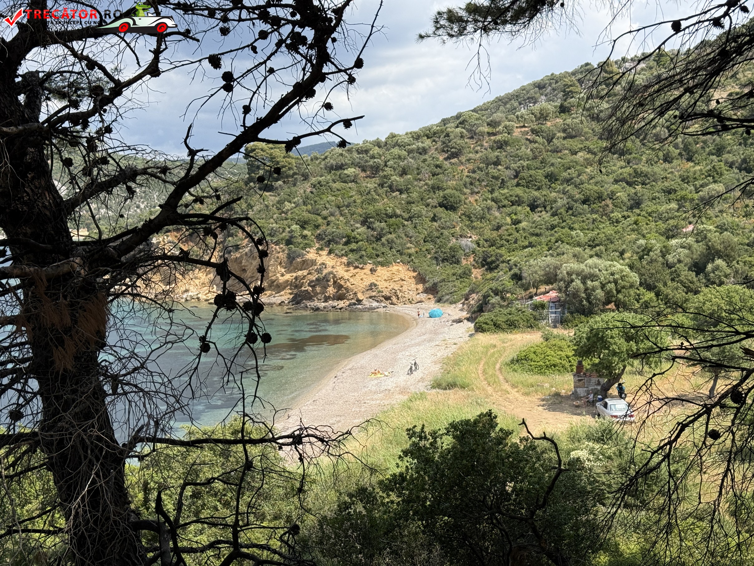 Secret Beach nu este ușor de găsit, dar tocmai asta o face specială. Pe drumul care duce spre capul peninsulei Sithonia, departe de așezările mari precum Vourvourou sau Sarti, există o rută greu accesibilă, recomandată doar celor cu mașini de teren (4×4). Nu există indicatoare clare sau poteci bine amenajate.