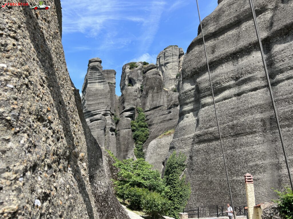 Aceste depuneri de gresii dure au capatat forme noi in milioane de ani de eroziune, iar multe dintre ele au inaltimi ce ating chiar 400 de metri. La poalele Meteorei, treci prin Kalambaka, un orasel cochet cu case albe si gradini pline de trandafiri, iasomie sau hortensii.