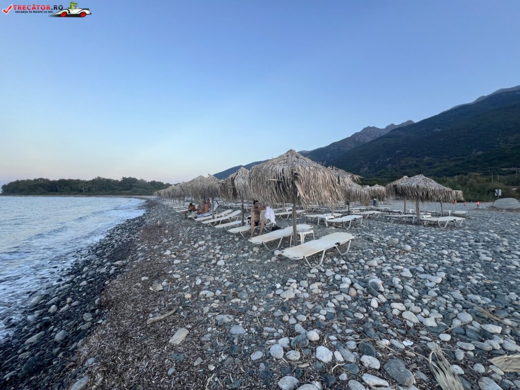 Plaja este accesibilă din localitatea Therma și oferă o atmosferă relaxată, ideală pentru a te bucura de soare și mare după o sesiune de băi termale.