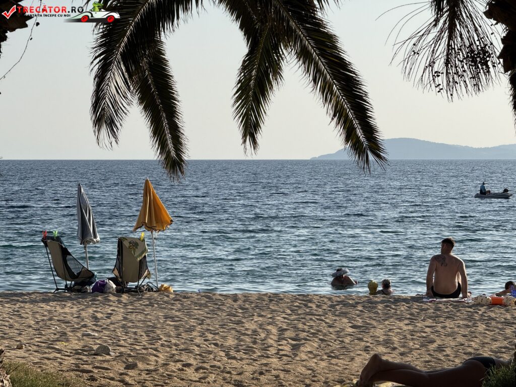 Plaja e lungă, are loc pentru toată lumea — fie că vrei un șezlong sub umbrelă sau preferi să stai cu prosopul în colțul tău liniștit. Copiii pot intra în apă fără grijă, iar iubitorii de snorkeling găsesc colțuri numai bune de explorat.