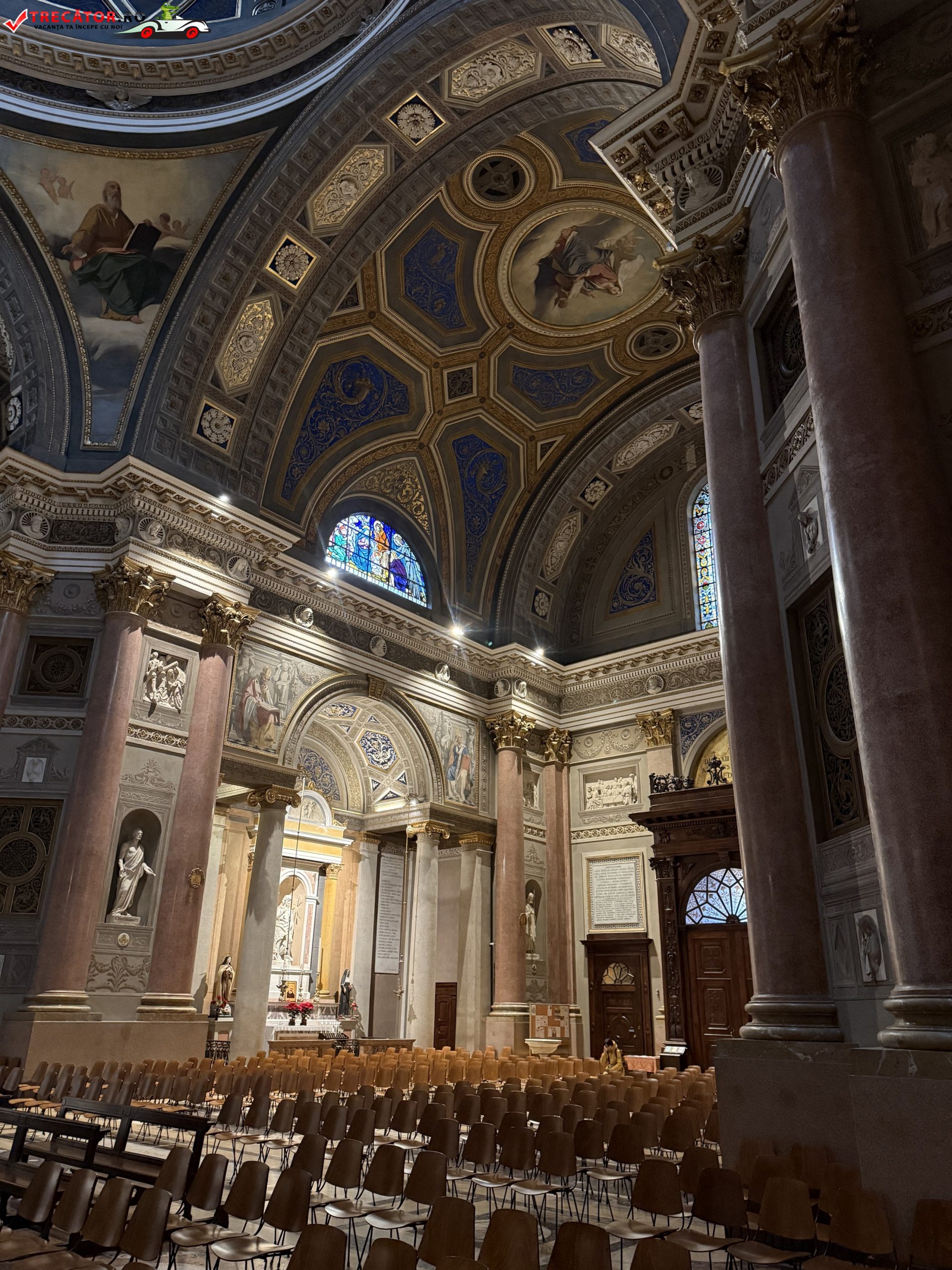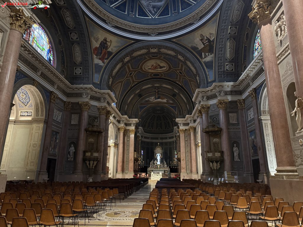 Din punct de vedere arhitectural, basilica este realizată în stil neoclasic, având plan în formă de cruce latină, o navă principală amplă, capele laterale și o absidă semicirculară. Cupola centrală, cu un diametru de aproximativ 18 metri și o înălțime de circa 27 de metri, conferă interiorului monumentalitate și lumină naturală. Lungimea navei principale ajunge la aproximativ 89 de metri, ceea ce transformă edificiul într-un spațiu liturgic impresionant.