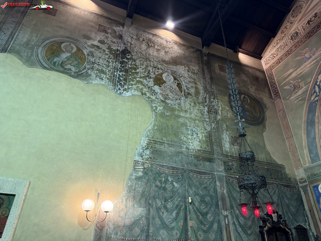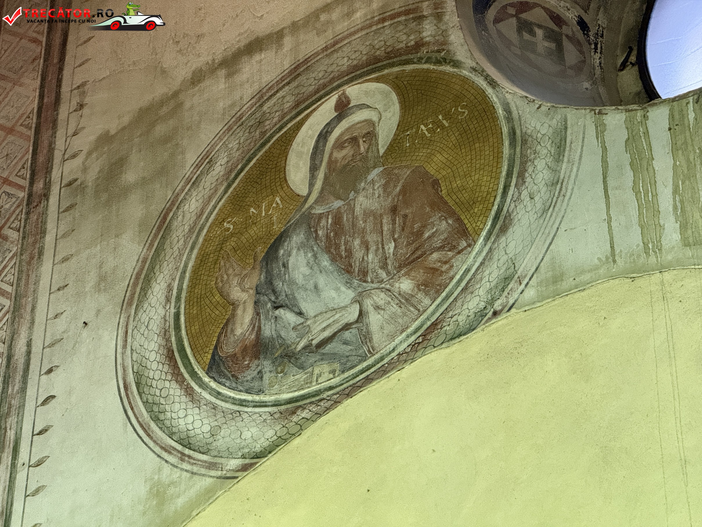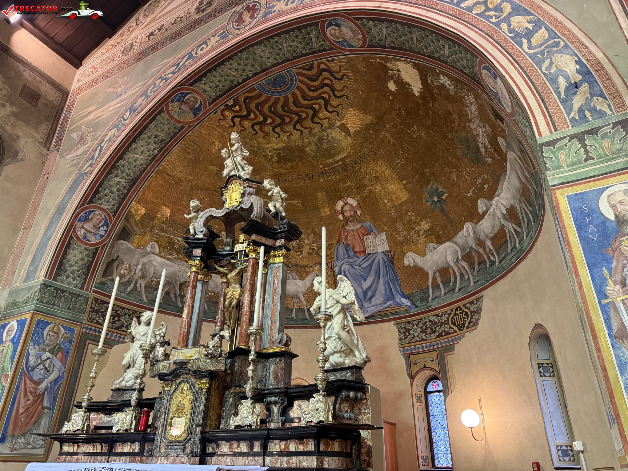 Pe pereți se află reprezentări ale apostolilor, simboluri ale evangheliștilor și diverse opere de artă religioasă, printre care o copie a icoanei „Madona Neagră de la Czestochowa”, oferită comunității din Gallarate în anii 1970.