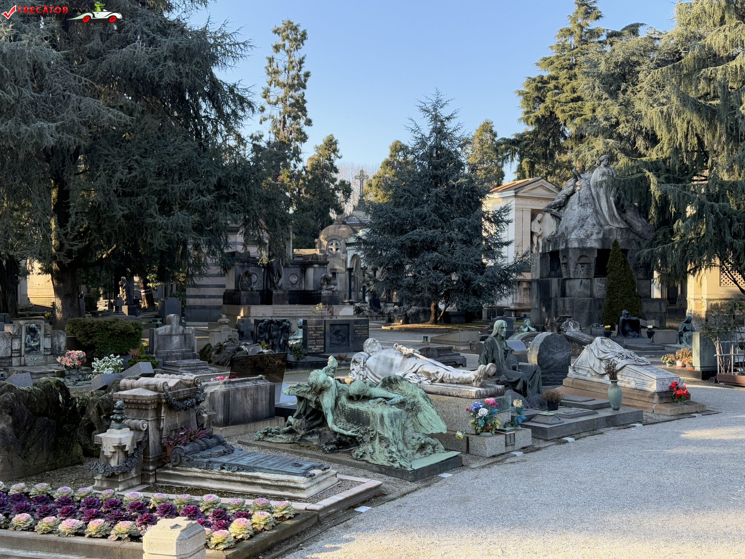 Cimitirul găzduiește o varietate impresionantă de monumente funerare, de la temple grecești și obeliscuri elaborate până la replici la scară redusă ale Coloanei lui Traian. Aceste structuri sunt opera unor artiști renumiți, printre care Adolfo Wildt, Giò Ponti și Lucio Fontana, reflectând diverse stiluri artistice și perioade istorice.
