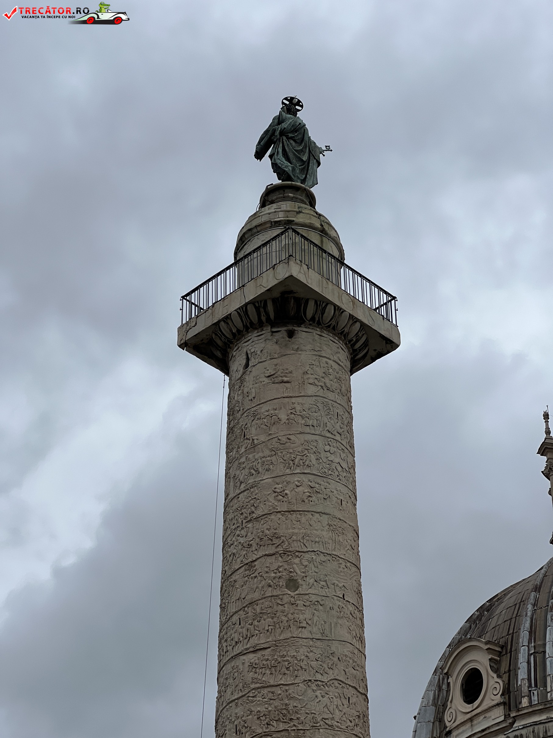 La vârful coloanei se afla o statuie a împăratului Traian, care a fost ulterior înlocuită cu o statuie a Sfintei Petru în Evul Mediu și cu o statuie a lui Traian în secolul al XVI-lea.