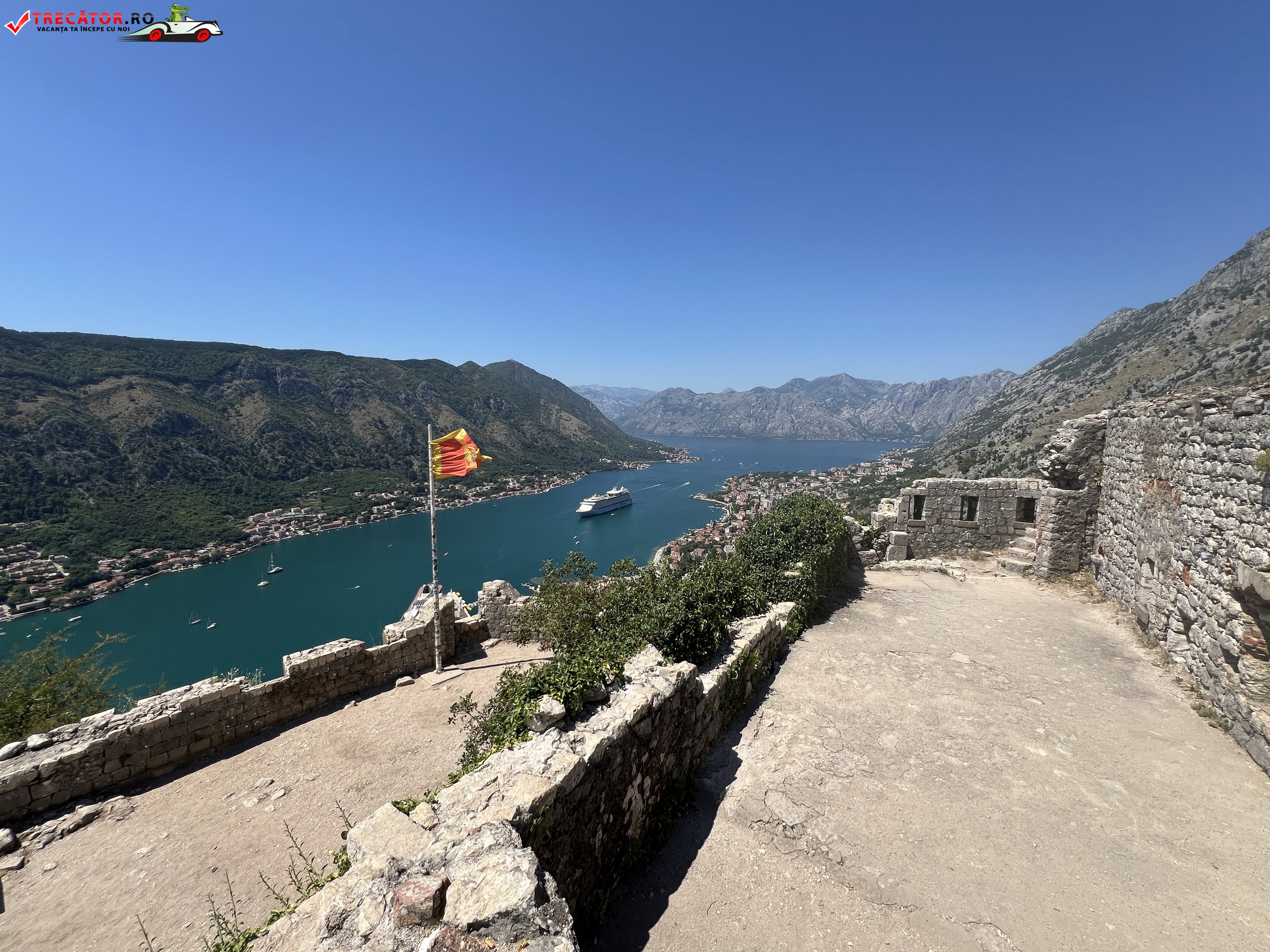 Odată ajuns la fortăreață, ești recompensat cu unele dintre cele mai spectaculoase vederi din Muntenegru. Golful Kotor, cu apele sale albastre adânci, înconjurat de munții abrupți și orașul vechi bine conservat, creează un peisaj deosebit de pitoresc. Această priveliște este una dintre cele mai fotografiate din Muntenegru.