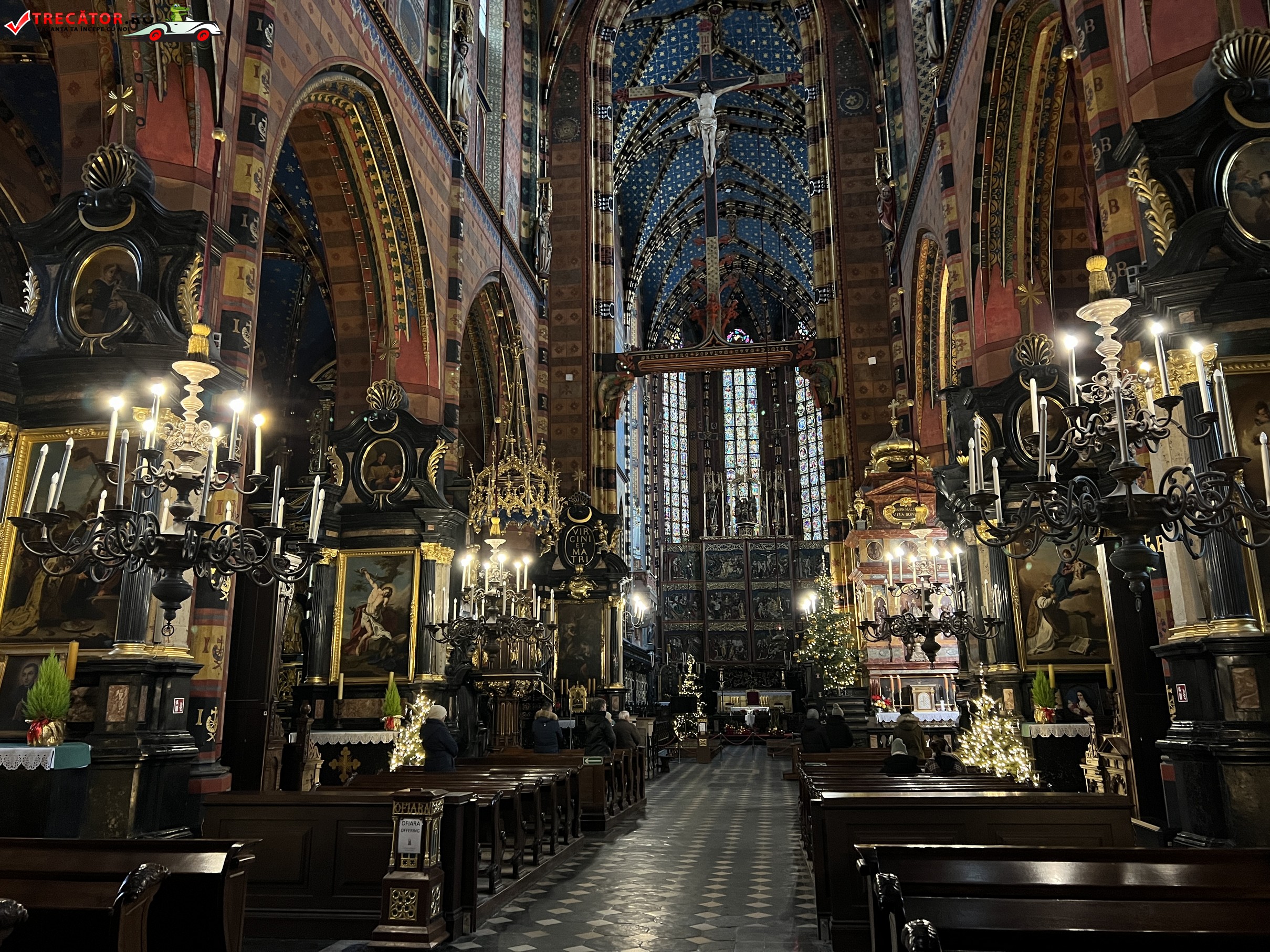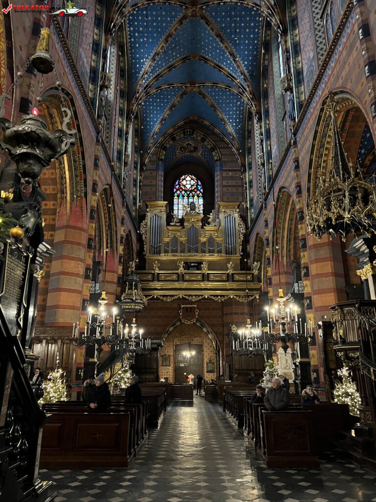 De asemenea, biserica este faimoasă pentru tradiția melodiilor trompetistului, care sunt interpretate în vârful turnului în fiecare oră, zi și noapte. Interiorul său bogat este decorat cu fresce, vitralii și alte opere de artă sacrală care ilustrează scene biblice și religioase.