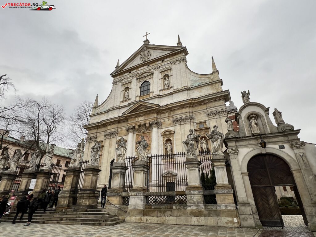 Biserica Sfintii Apostoli Petru si Pavel este prima biserica baroca din Cracovia. Construita la sfarsitul secolului al XVI-lea pentru Iezuiti de catre Giovanni Maria si imitand Biserica del Gesu din Roma biserica poseda o fatada superba din piatra. Iezuitii au sosit in Polonia in anul 1563.