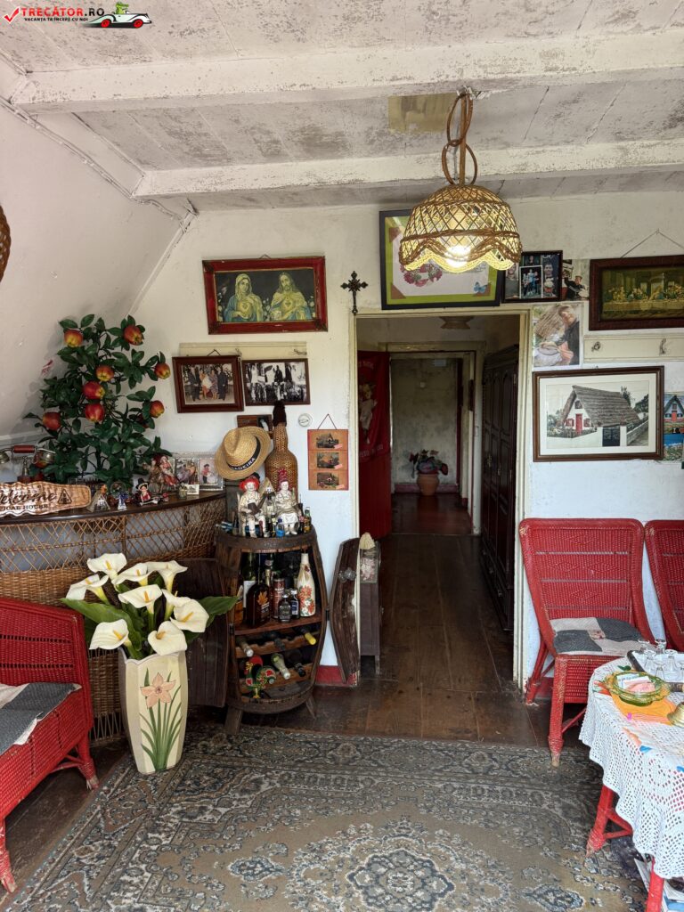 Interiorul este simplu, dar funcțional. Parterul, cunoscut local ca „loja”, servea drept spațiu de locuit, adesea împărțit într-o zonă de zi și una de dormit. Deasupra, un pod era folosit pentru depozitarea produselor agricole, precum semințele pentru următoarea semănătură. În multe cazuri, bucătăria era amplasată într-o construcție separată, pentru a reduce riscul de incendiu cauzat de acoperișurile de paie.