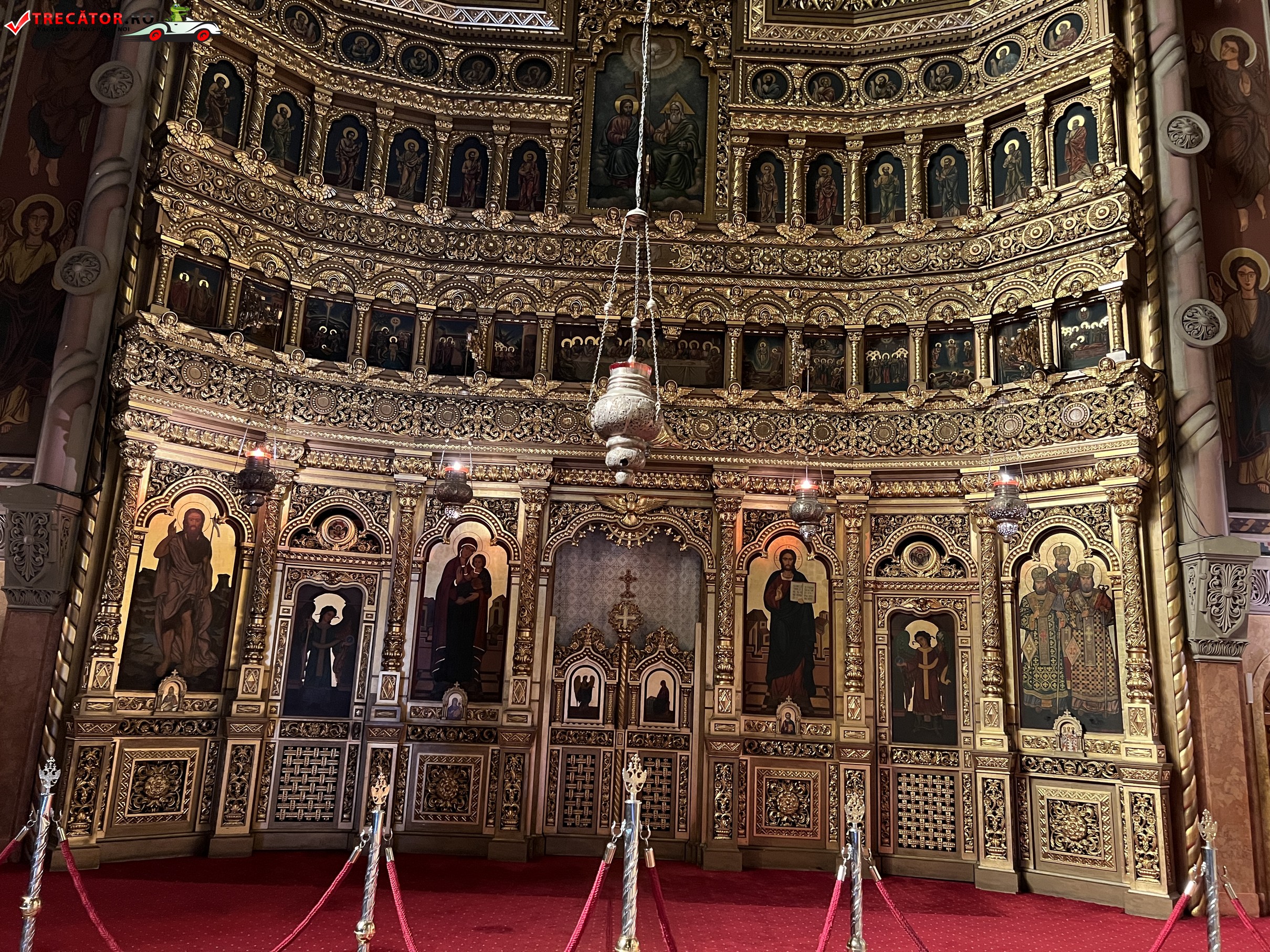 In pronaos, pe partea dreapta, sunt asezate, inca din anul 1956, moastele Sf. Iosif cel Nou de la Partos, fost Mitropolit al Timisoarei, in secolul al XVII-lea. Iconostasul impresioneaza printr-o sculptura realizata de Stefan Gajo.