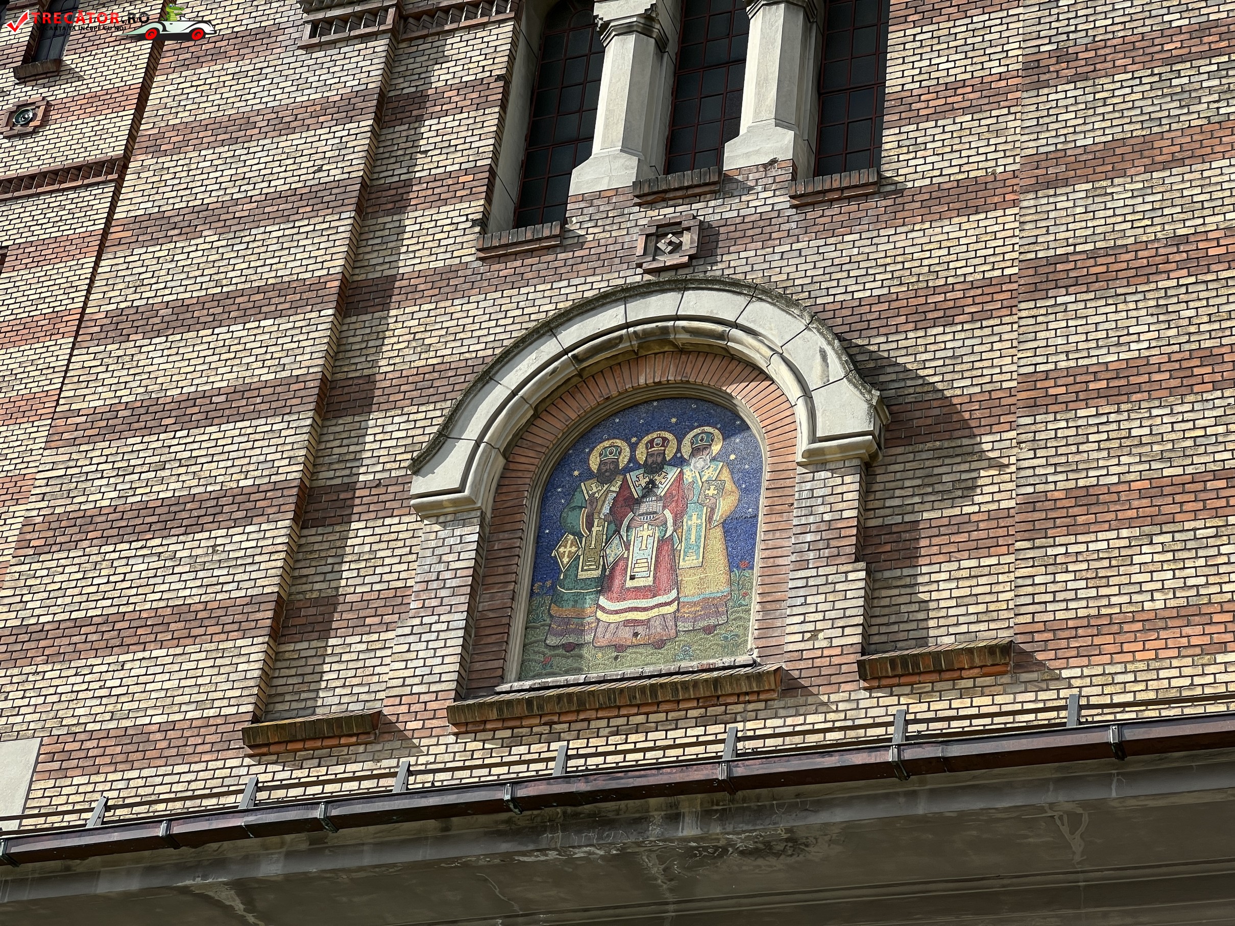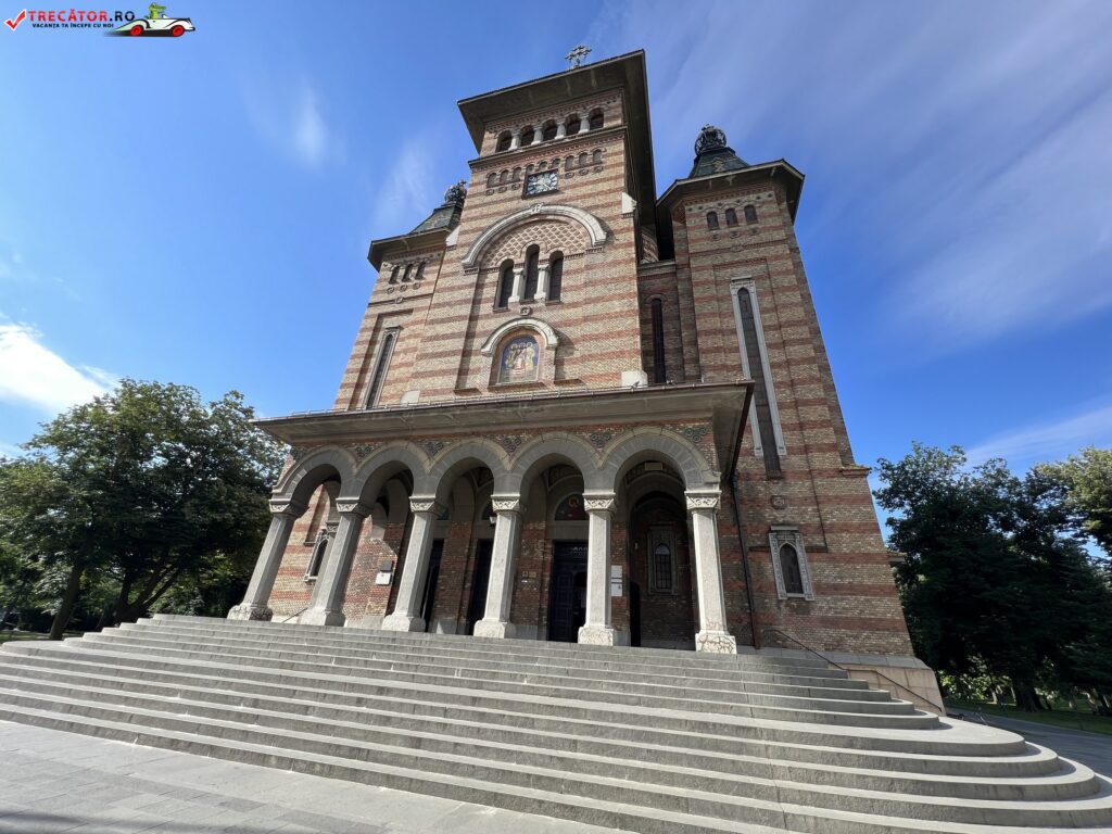 Situata in centrul orasului Timisoara, la incrucisarea celor mai importante artere de circulatie, catedrala Mitropolitana cu hramul „Trei Ierarhi”, impresioneaza prin dimensiunile ei, prin gratia liniilor cat si prin invelisul de tigla smaltuita care straluceste de departe in razele soarelui.
