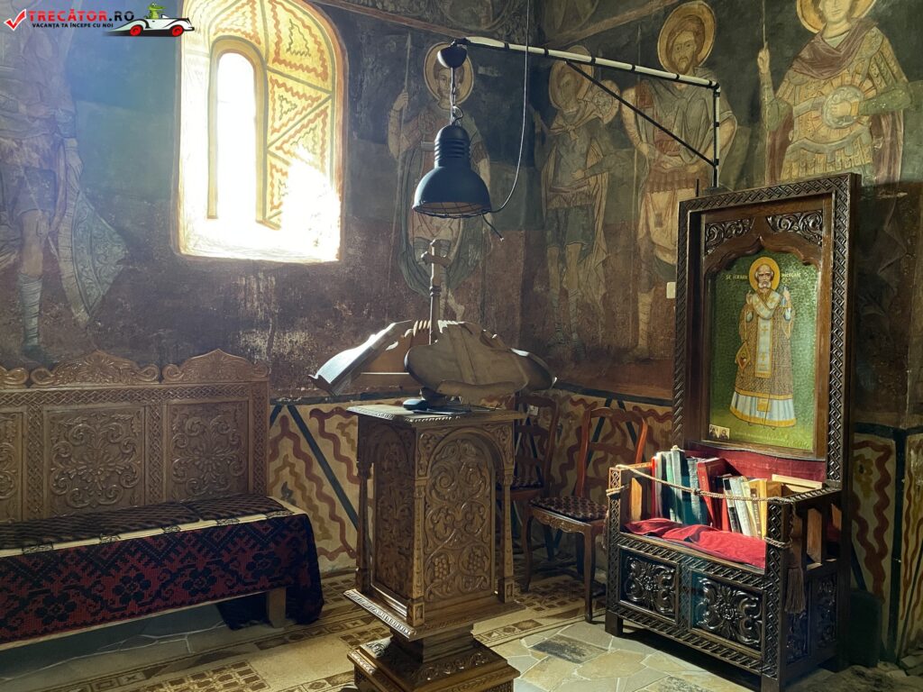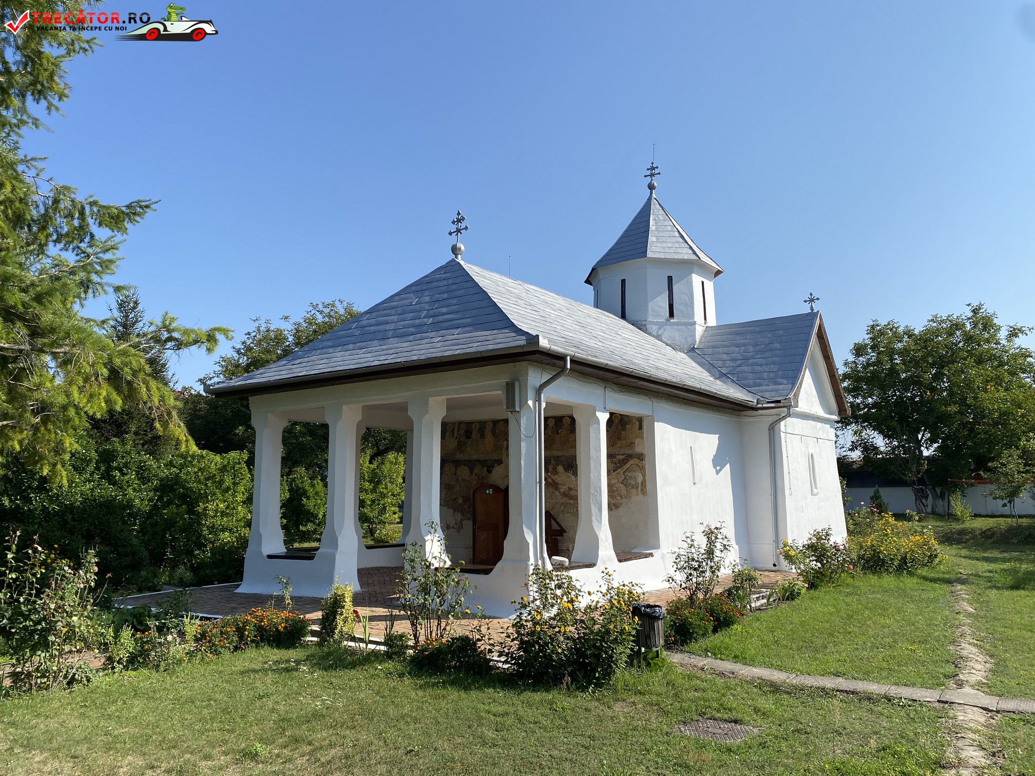 „Prima la stanga” a venit destul de tarziu, dar in departare se vedea satul cu biserica inalta, iar manastirea alba, in stanga. Intram pe poarta din lemn sa descoperim manastirea. Este o liniste perfecta. Biserica este racoroasa si are picturi clare, frumoase, vechi de sute de ani.