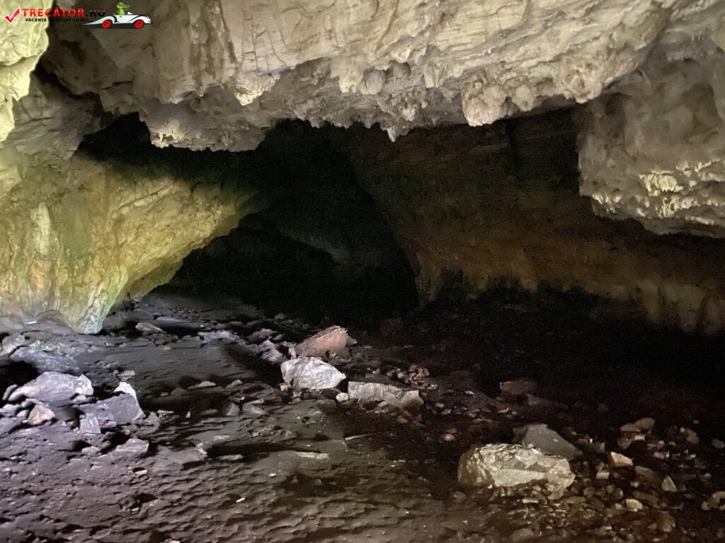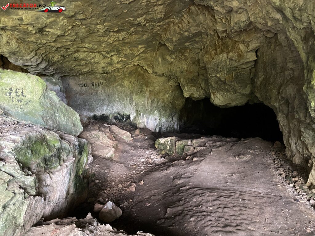 Intrarea, lată de aproape zece metri şi înaltă de doi metri, asigură un iluminat difuz al peşterii până la aproximativ 70 de metri, drumul putând fi continuat doar cu ajutorul lanternelor. Pereţii sunt acoperiţi de alge iar într-o sală săpată în brecie tectonică – o raritate în peşterile din România – trăieşte o colonie de lilieci, care a dat şi numele sălii care reprezintă partea cea mai spaţioasă a galeriei principale. Cele trei etaje au caracter subfosil iar sălile principale s-au format în urma intersectării mai multor falii.