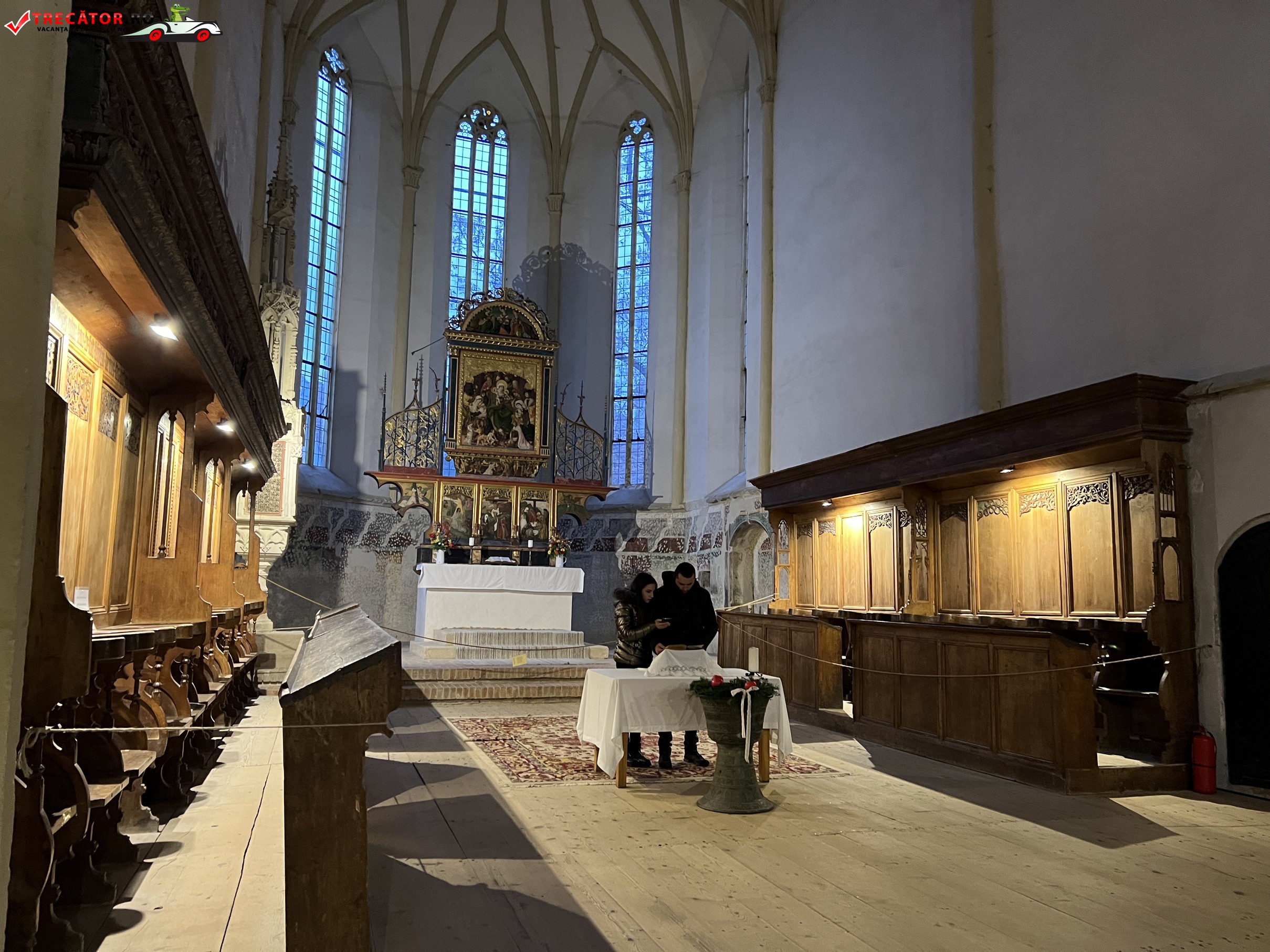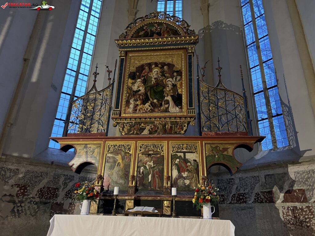 Lucrările la biserică au fost finalizate în jurul anului 1523. Principalele elemente de atracție în această biserică sunt tabernaculul și amvonul lucrate în piatră, datate din secolul al XV-lea. Altarele de la biserica din deal sunt dedicate Sfăntului Nicolae, Sfintei Ursula.