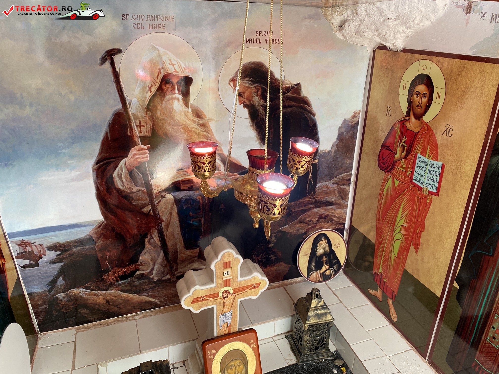 Părintele arhimandrit Antonie a zidit şi un frumos paraclis, cu hramul „Sfântul Prooroc Ilie Tesviteanul”, o troiţă, în poarta de jos a mănăstirii, cu hramul „Sfântul Antonie cel Mare”, şi a încorporat în mănăstire stânca din vârful Muntelui Piatra Tăieturii, de la care vine şi numele locului. La baza acestei stânci, care, datorită poziţiei ei dominatoare în această vale din mijlocul Călimanilor, a fost în vremea războiului cuib de mitralieră, e o peşteră, care a fost pictată şi sfinţită tot cu hramul Sfântului Antonie cel Mare.