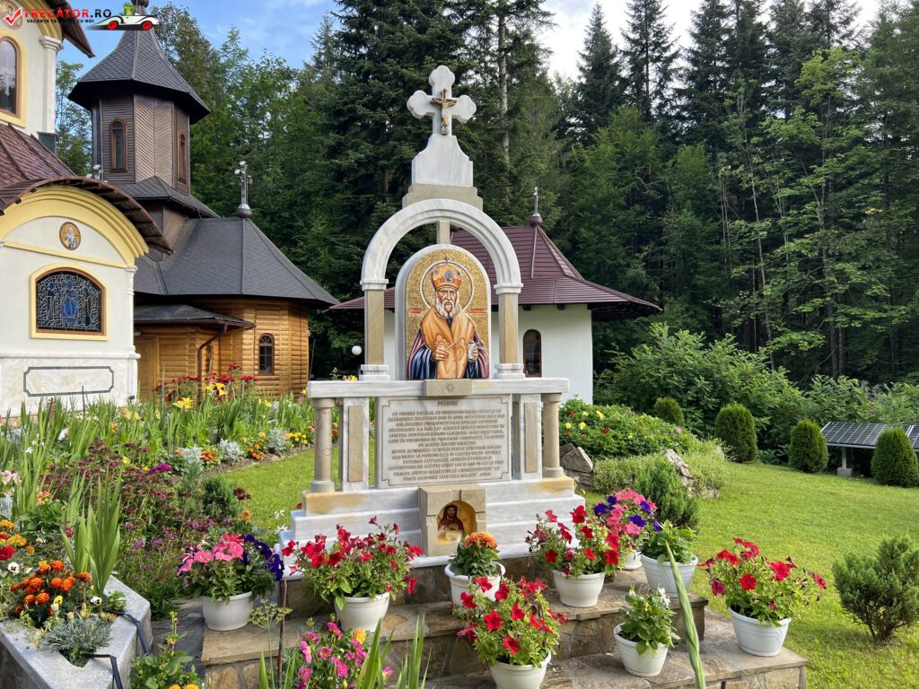 Viaţa sa, atât de plăcută lui Dumnezeu, a fost recompensată cu slava de a ajunge lângă Prestolul Preasfintei Treimi şi de a trimite mai departe rugăciunile pe care noi le înălţăm spre dânsul. De aceea, aşa cum am mai spus şi mai sus, martorul acesta, sau acest Sfânt Lăcaş, aduce aminte de locul în care Sfântul s-a adăpostit de frica papistaşilor şi a celor ce au schimbat mişeleşte calendarul iulian, iar sub oblăduirea PS Episcop Sofronie Suceveanul, mănăstirea şi celelalte anexe s-au bucurat de o infrumuseţare răpitoare.
