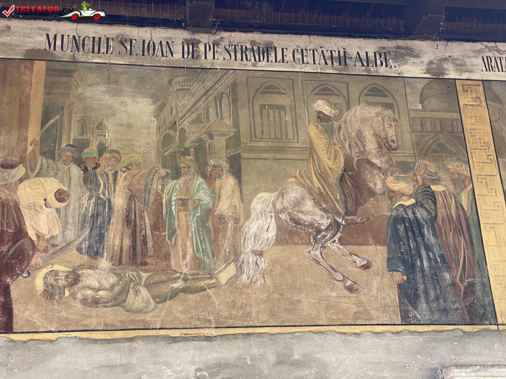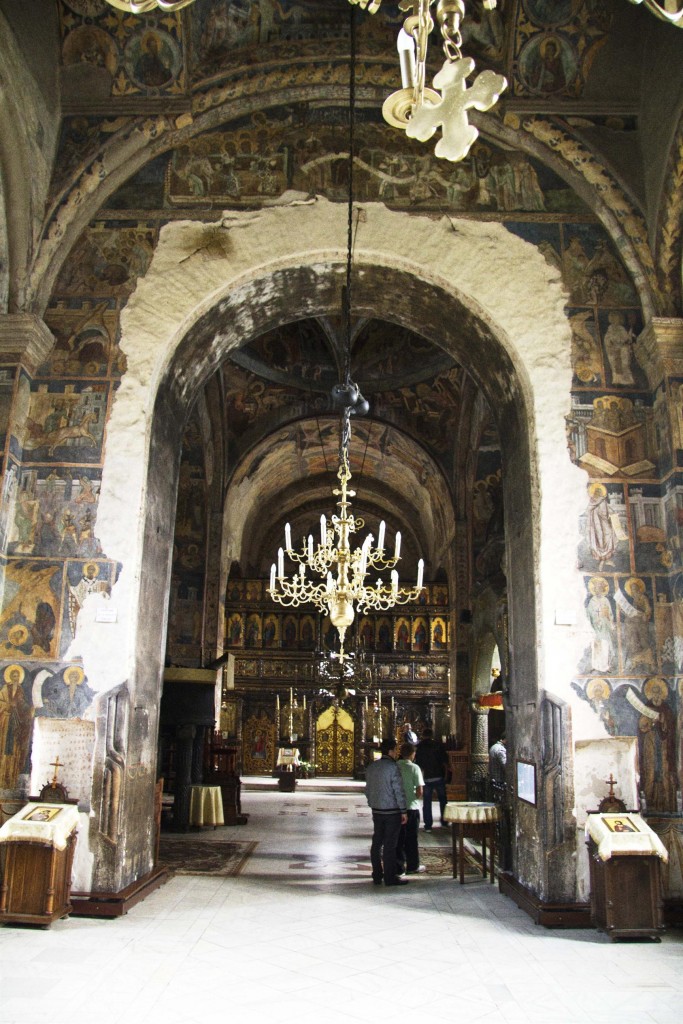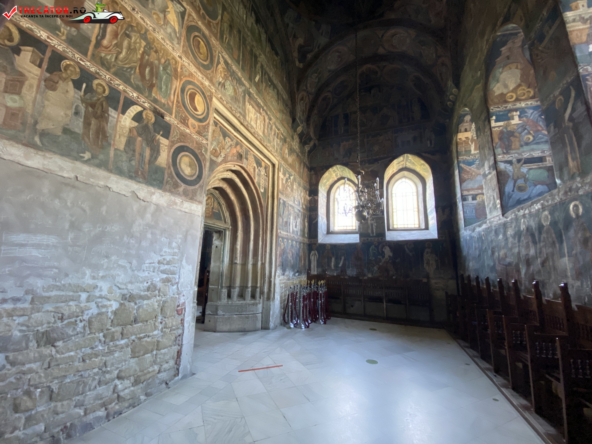 Este executată în tehnica frescă, în stil bizantin, în anul 1534 domn fiind Petru Rareș nu se cunoaște numele meșterilor. A fost curățată de fum și reâmprospătată în anii 1906-1909 de pictorul Iohan Viertelberger. Menționăm o parte a scenelor pictate.