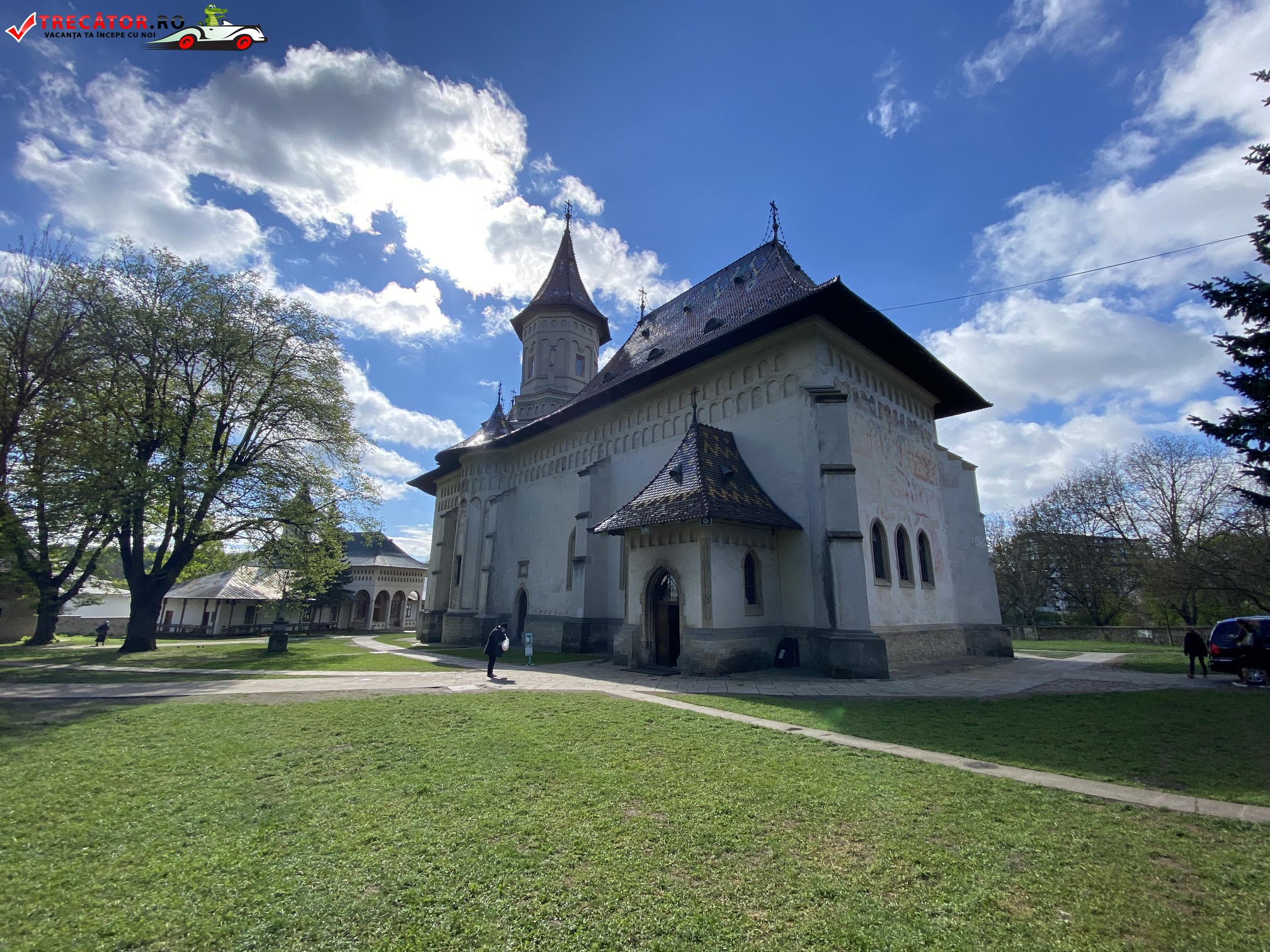 Deasupra naosulșui se înalță turla așezată pe două baze poligonale în arcuri piezișe și pandativi caracteristici stilului moldovenesc. Este ornată cu ocnițe și discuri smălțuite. Bolțile absidelor sunt în semicalotă, în exterior are nouă contraforturi, câte patru de fiecare latură, iar unul mai mic la altar. Absidele laterale au câte cinci firide lungi, iar în absidia altarului sunt nouă firide.