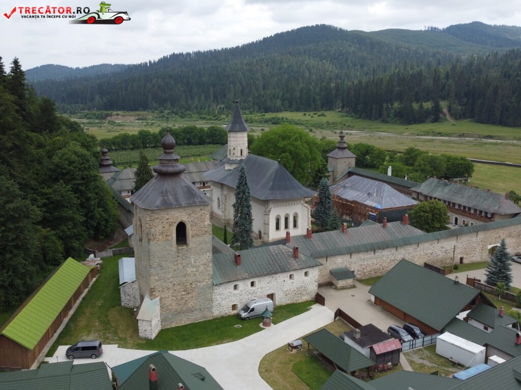 Construcția bisericii mănăstirii a fost inspirată de Mănăstirea Probota, însă dimensiunile sale au fost mărite, făcând-o cea mai mare biserică din Moldova până la sfârșitul secolului al XVIII-lea. Edificiul este amplasat într-o zonă pitorească, înconjurată de trei dealuri, la aproximativ 30 km nord-vest de Fălticeni, oferind un peisaj deosebit și o atmosferă de liniște și reculegere.