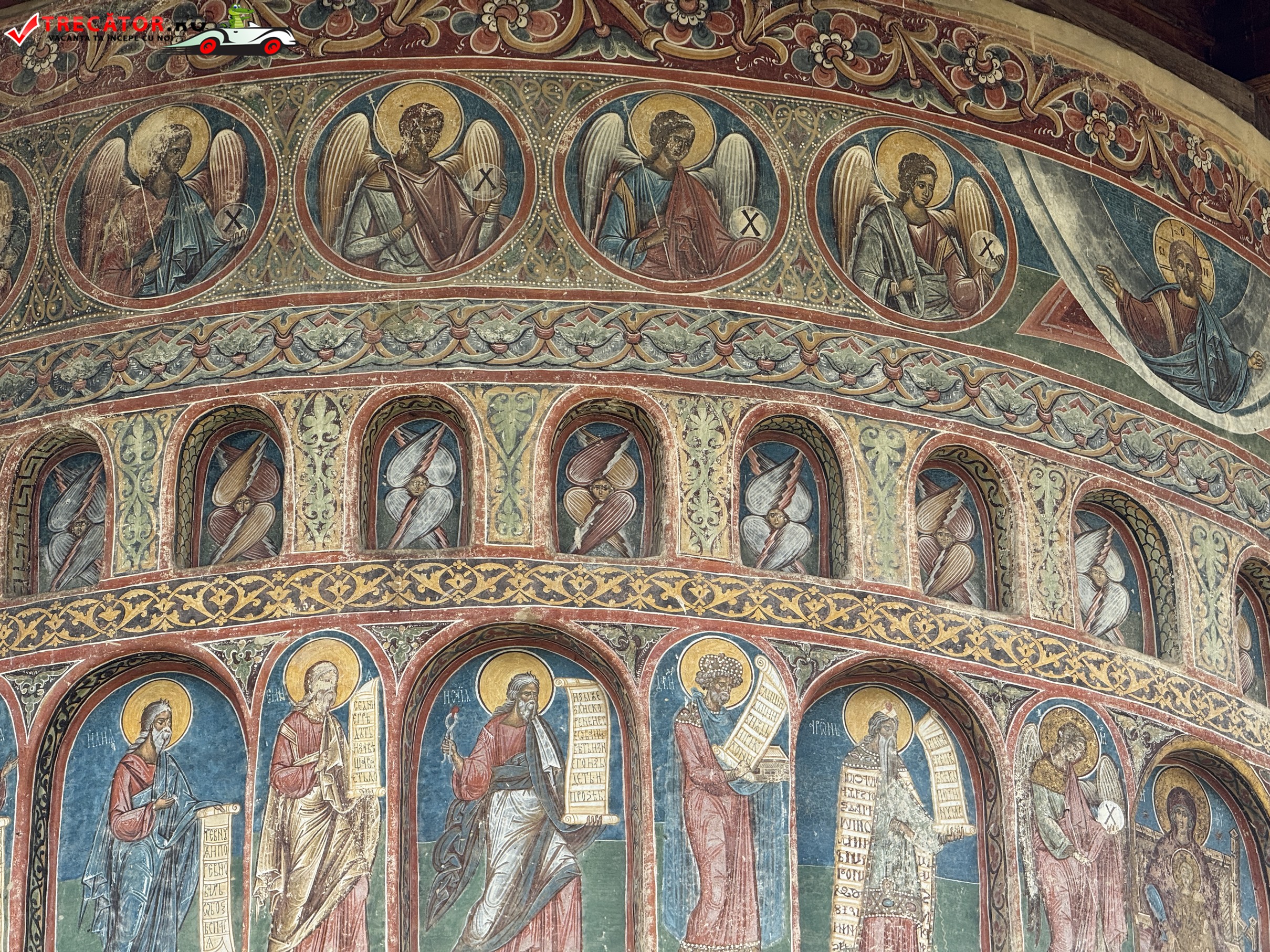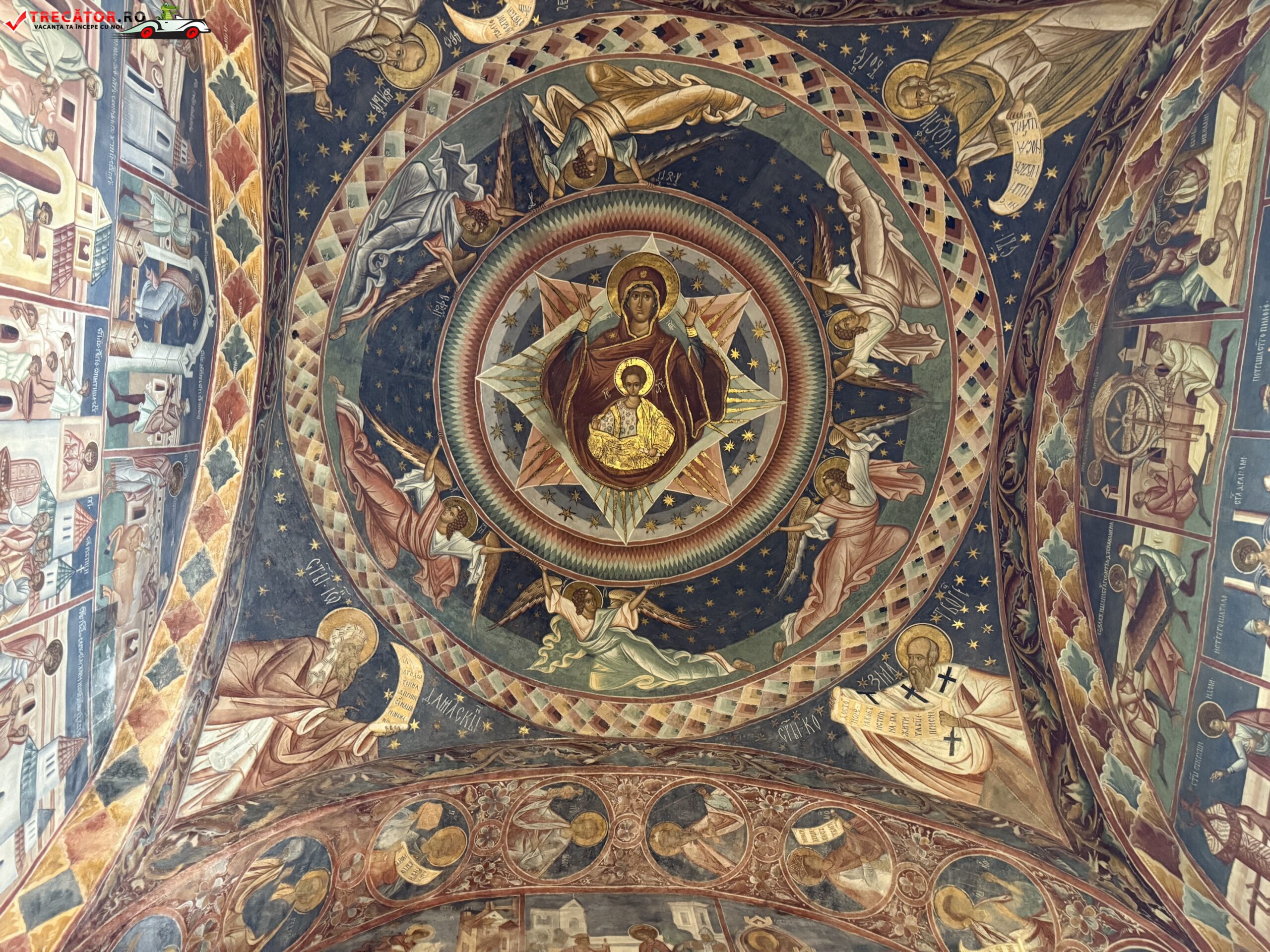 Valoroase din punct de vedere artistic este si catapeteasma din lemn de tisa aurit si usile imparatesti. Pe o mare parte din peretii exteriori, isi urmeza firul traditional, pe un fond albastru : Arborele lui Ieseu, pe faţada de sud, Cinurile pe abside, Acatistul Maicii Domnului, Viata Sfantului Antonie cel Mare, Facere chiar pe fatada de nord. Vizitatorii si turistii se intreaba cum de poate emana atat de mult sentiment de frumos, arta, cultura si istorie o ctitorie de marimi nu foarte mari.