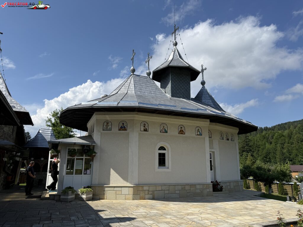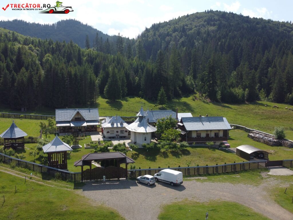 La doar 2–3 km de Mănăstirea Voroneț, se află un mic schit dedicat Sfântului Daniil Sihastrul. Spre deosebire de vechea chilie tradițional-săpată în piatră, aici nu vei găsi peștera-săpată — locul istoric unde s-a nevoit sfântul s-a pierdut în timp. În schimb, în anii ’90, comunitatea monahală a construit clădiri noi: o bisericuță din lemn pe fundație de beton, chilii din lemn de brad și stejar, clapă cu clopotniță și un aghiasmatar, toate pictate și dăruite sub ocrotirea Mitropoliei Bucovinei.