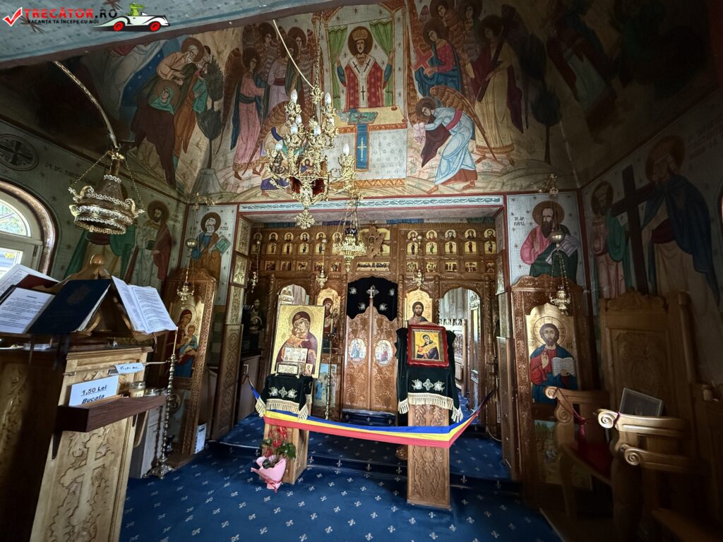 Construcțiile sunt modeste, dar primitoare. Biserica mică, din lemn, prezintă compartimentare clasică: pronaos, naos, altar și pridvor închis, cu o turlă oarbă octogonală. Pereții interiori sunt îmbrăcați în lambriu, icoane, iar exteriorul e finisat cu draniță.