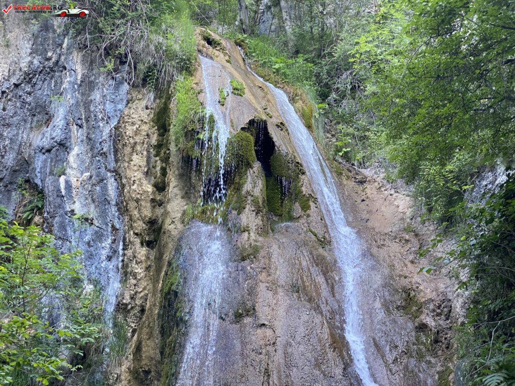 De acolo veți fi îndrumați de proprietar, cascada se află undeva în spatele pensiunii, la 2 minute de urcat printr-o pădurice, de-a lungul izvorului.