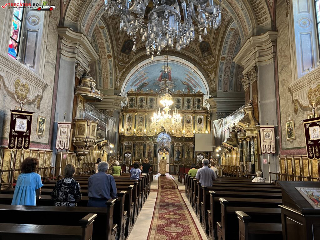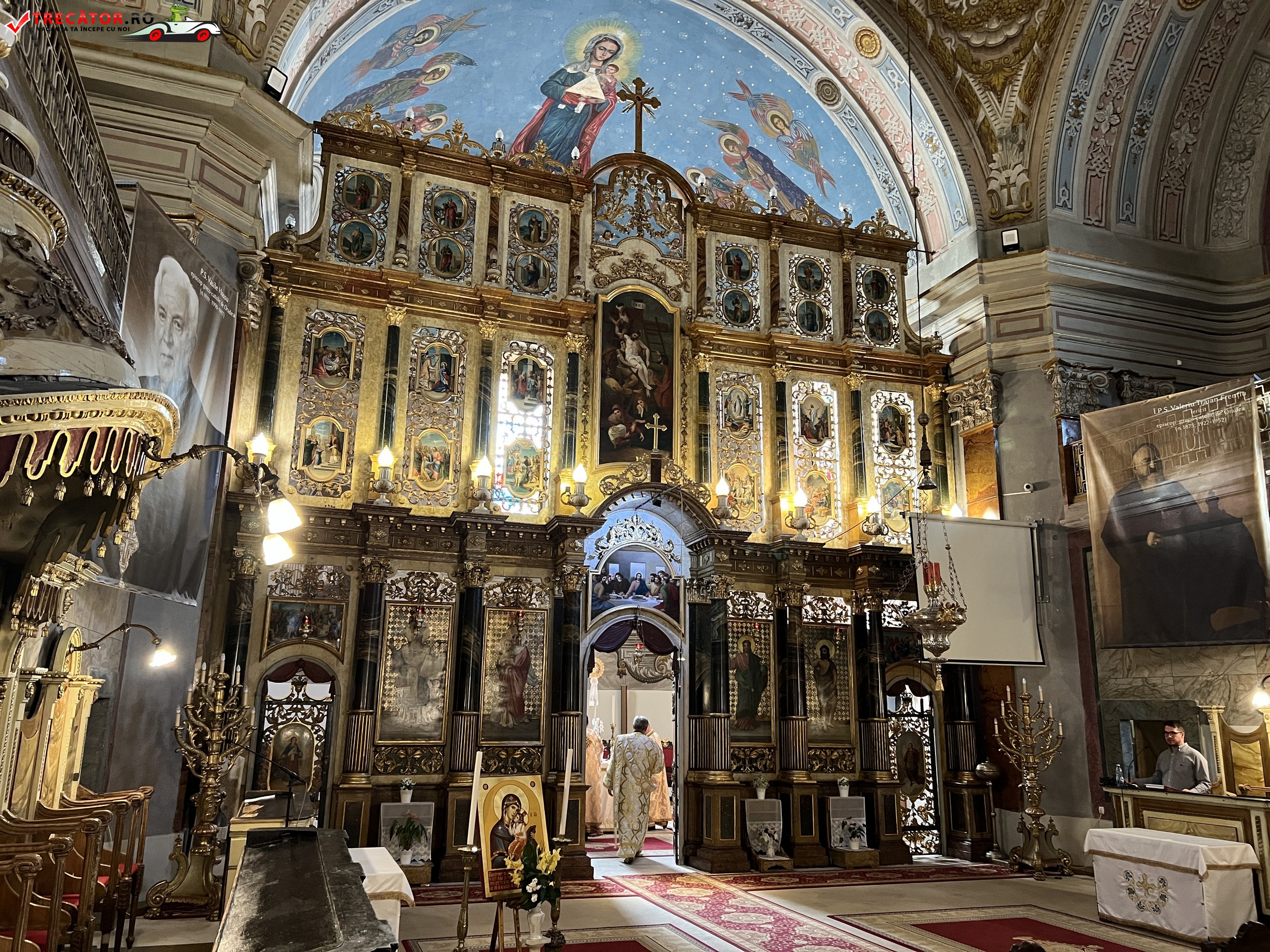 Iconostasul este o piesă deosebită ca valoare decorativă. Conform tradiţiei bizantine, el este împărţit în trei registre decorate somptuos. Tabloul central, ce are ca temă “Coborârea de pe cruce”, este inspirat din lucrarea lui Rembrandt.