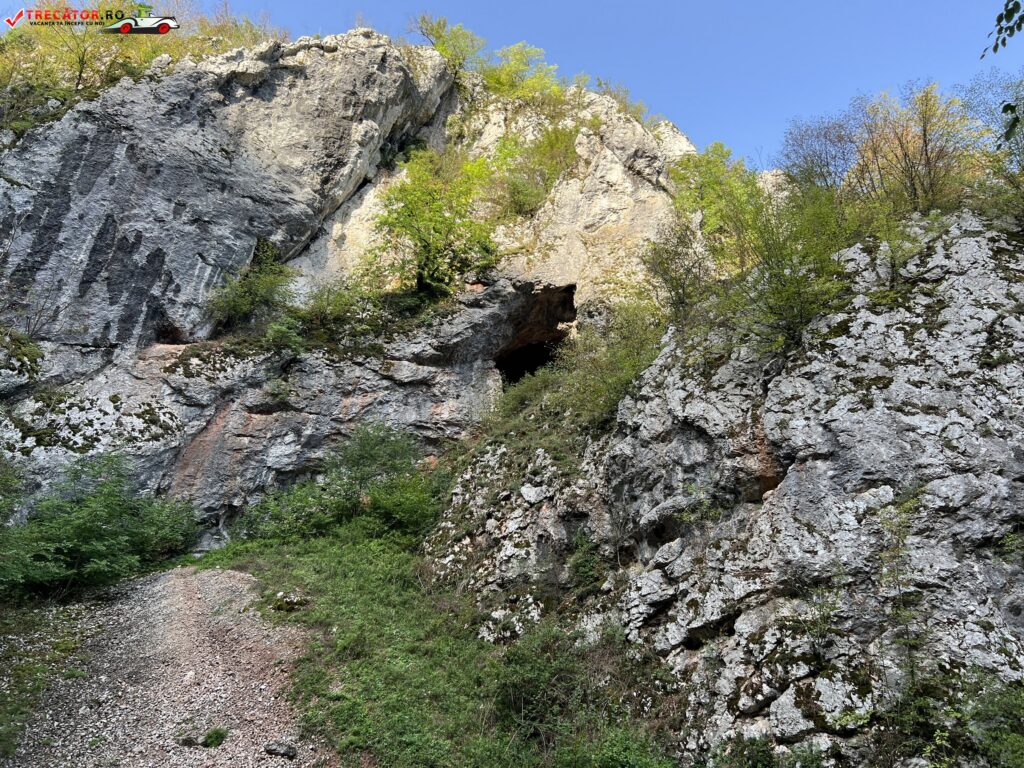 Dupa circa 1 km de mers prin chei ajungem la o mica, dar frumoasă cascadă, iar în versantul drept la 35 m diferenta de nivel se deschide intrarea impunătoare a peșterii Roșie, iar în versantul stâng Peştera Alba.