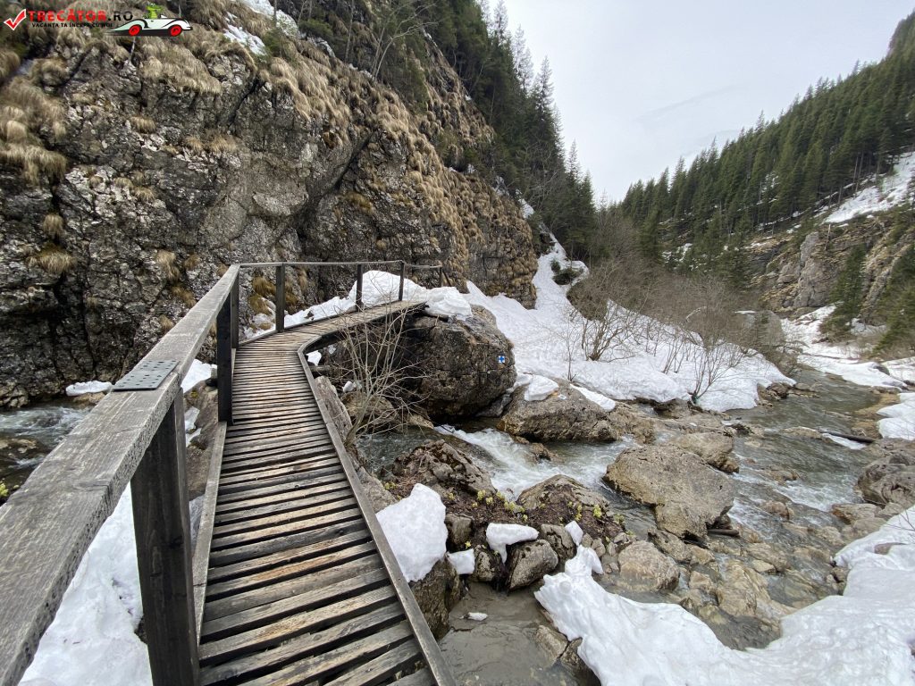 Traseul prin Cheile Zanoagei este compus din 3 portiuni distincte. In prima portiune din traseu o sa ai parte de o poteca care este plina de pietre. Trebuie sa ai grija deoarece pietrele devin foarte alunecoase daca sunt umede.