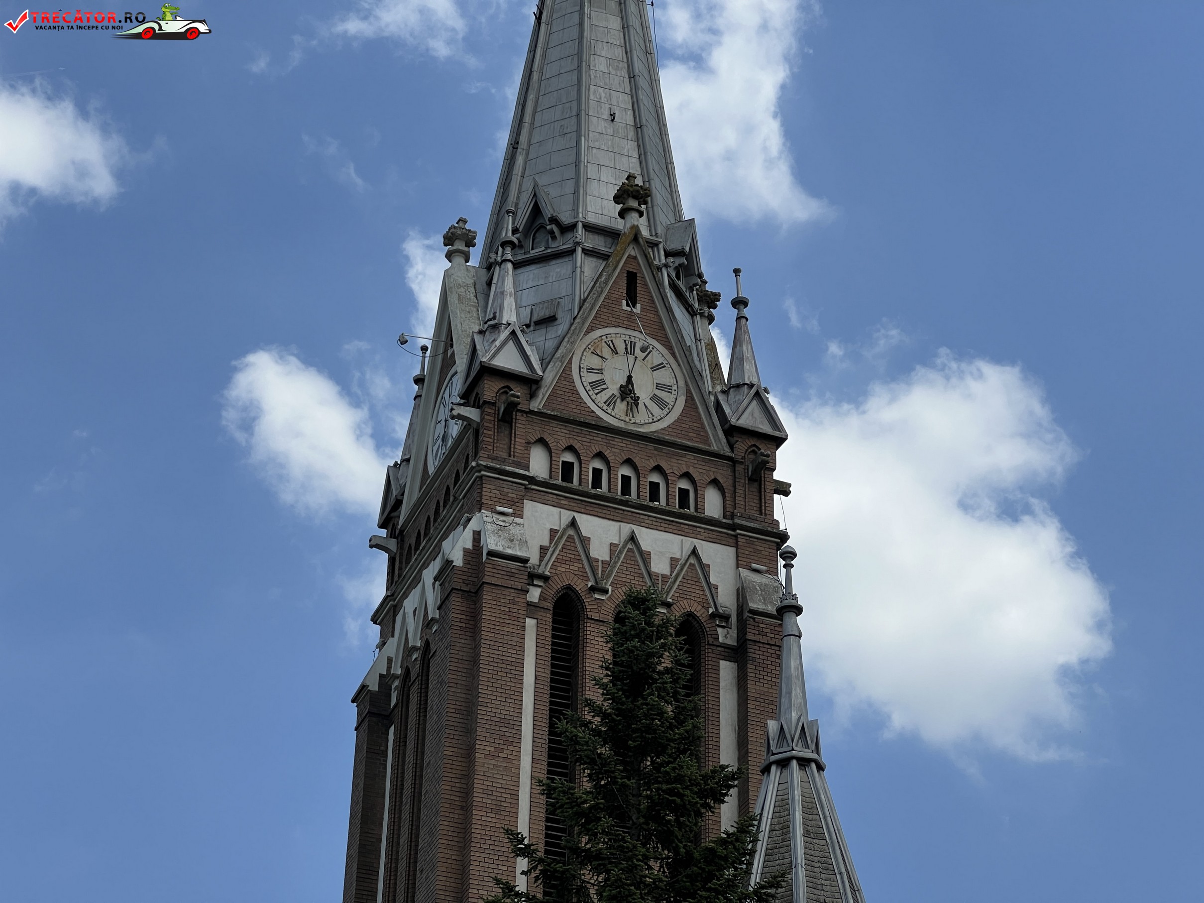 Inaltimea Bisercii Rosii nu avea cum sa nu se faca remarcata indiferent in ce zona a orasului te-ai afla, Turnul sau fiind construit pe o inaltime de 46 metri. De asemenea, nu poti trece pe langa biserica fara sa nu ii remarci vitraliile destul de inalte, construite in stil neogotic.